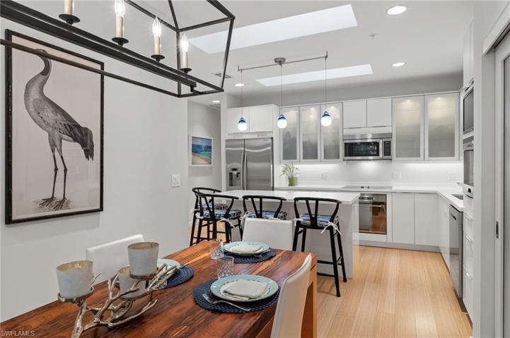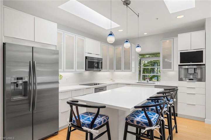100% walkability! Light, bright and beautifully renovated! This pretty gem is an easy stroll (1.5 blocks) to the Gulf beaches and one block to Fifth Avenue restaurants and shops in Olde Naples! Recent renovations include impact resistant doors and windows, remodeled baths and a pristine kitchen! Four skylights allow natural sunlight to stream into the main living areas and primary bath while three sets of French doors open from the great room to the spacious screened balcony…a perfect place to enjoy sunsets overlooking the Stones Throw pool. The striking primary bedroom features a captivating bath with a separate tub and shower, double vanity and a spacious walk in closet with built in cabinets/drawers as well as a private balcony to enjoy morning coffee. The third bedroom is currently used as a wonderful home office while the guest room and guest bath afford streamlined luxury! Only six units comprise this community situated at the corner of 4th Avenue, S. and 2nd Street, S. in Olde Naples.
