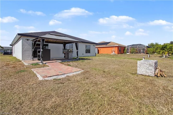 Welcome to this beautifully RENOVATED 4-BEDROOM, 2-BATH residence located in a desirable NE Cape Coral neighborhood. Designed with a functional OPEN FLOOR PLAN, this home offers generous living spaces that feel bright, inviting, and ideal for both everyday living and entertaining. Interior highlights include PORCELAIN TILE FLOORING, FRESHLY PAINTED INTERIORS, and a spacious kitchen with AMPLE CABINETRY and a custom DECORATIVE STONE BAR AREA that adds character and style. The PRIMARY SUITE includes an en-suite bath and ample closet space for convenience. Step outside to a spacious backyard featuring a COVERED OUTDOOR AREA, perfect for barbecues, gatherings, or relaxing evenings at home. Situated on a quiet street with easy access to shopping, dining, schools, and major roadways, and with NO HOA, this move-in-ready property offers both comfort and long-term potential in a prime Cape Coral location.