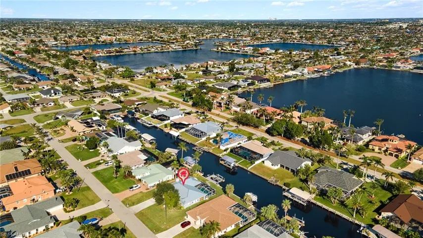 Boaters DREAM!!! Beautifully remodeled Direct Gulf sailboat access pool home with new standing seam metal roof (one of the longest lasting and most expensive roofs in Florida)!!! This ONE OWNER home has impact windows all around, with electric roll down shutters out back, all new flooring, new kitchen cabinetry and marble kitchen counters. Beautiful dock with lift, remodeled bathrooms, one year old A/C, newer kitchen appliances, new interior and exterior paint, completely Redone pool with diamond bright finish, new Trex deck with new boat lift! This home boasts an assumable flood insurance policy. APPROXIMATELY $1400 Per year!!! Large inside laundry room with extra storage and a beautiful barn door, includes a 2023 Maytag washer and dryer! Cathedral ceilings in the family room and living room make everything feel more spacious! In one of Cape Coral‘s most sought after neighborhoods close to Tarpon Point Marina and Cape Harbour. This one owner, move in ready gem cannot be missed!