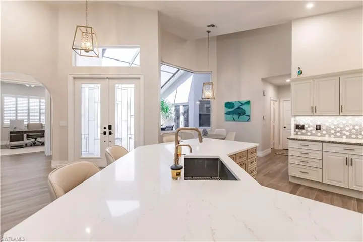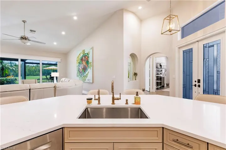 Stunning Windstar on Naples Bay free standing home will wow you and your guests. This estate home has been entirely renovated with over $350,000 worth of improvements. Some of the additions are new roof, two new air conditioners, new pool cage and surround, new master bath, new flooring throughout and many, many more additions that are too many to mention. The large, open living/dining room offer a lighted visual out past the pool and onto the sweeping beauty of Windstar’s 17th fairway. You and your guests can enjoy making breakfast in the new updated kitchen and breakfast area where you find the fabulous assortment of high-end appliances such as Viking, Bosch, Sub Zero, Miele. Your guests will relate their wonderful experience of sleeping in the Casita with its own bath and listing to the falling sounds from the water fall outside their door. Your morning should include a trip to the Keewaydin Island on Windstar’s popular boat, The Queen. You and your guest must plan a shopping trip down on 5th to complete a wonderful time together. Windstar is first on everyone’s list. Wont you join us?