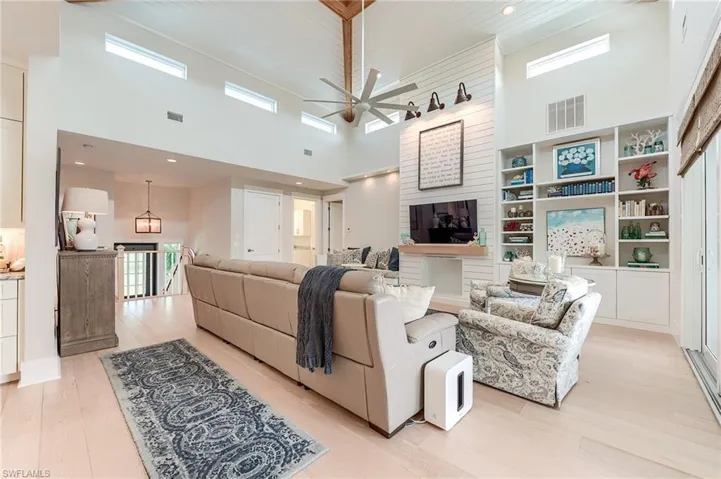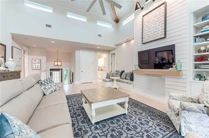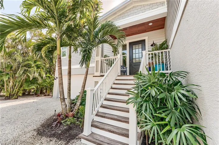 Welcome to an exceptional residence located in the beloved Gumbo Limbo neighborhood of Sanibel Island! This custom-built single-family home, constructed in 2017, epitomizes luxury and modern convenience within a spacious and very private .62-acre lot. The elevated home meets all current codes and was designed for the island lifestyle with upgraded fixtures and finishes that enhance its coastal design aesthetic. The interior offers a generous layout comprising three bedrooms and three bathrooms, each crafted with meticulous attention to detail. Vaulted ceilings contribute to the home’s airy atmosphere, while impact windows and sliders allow for ample natural light, creating a bright and inviting environment. The metal roof and fiber-cement siding provide both durability and style, ensuring long-lasting protection for the property and peace of mind for the owner. Designed to meet various needs, the property includes a two-car garage and an oversized one-car garage, offering substantial space for vehicles and storage. Additional workshop and office space provides versatility for hobbies and remote work. Abundant storage options help maintain organized and clutter-free living spaces. The lushly vegetated yard offers a tranquil and private retreat. The heated pool and spa, enclosed within a two-story screen, seamlessly integrate indoor and outdoor living. Outdoor entertaining spaces are ideal for gatherings, and nearby beach access ensures seamless access to the pristine shores of Sanibel Island. Whether seeking a permanent residence or a seasonal retreat, this property provides an unparalleled living experience. Do not miss the opportunity to own this remarkable home that perfectly captures the essence of island living!