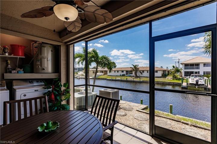 Welcome to your boater’s paradise! Discover the ultimate Gulf access condo at an unbeatable price, complete with a boat dock, first come first serve, but plenty of space open. Immerse yourself in the stunning canal views and relish the charms of this first-floor end unit, where the Hurricane Impact windows and Storm Smart lanai electric roll-down shutters provide a sense of serenity and security. NO HURRICANE DAMAGE IN UNIT. This immaculately kept vacation home boasts a kitchen with rarely used appliances and like new washer and dryer. Brand new roof, carport, and storage unit. Scheduled exterior paint is on the horizon. Step outside to find extra storage right outside your door, making it convenient for all your boating gear. With so much potential, this perfectly priced condo awaits a new owner to infuse their own creative touches. Conveniently situated in the heart of Cape Coral, this prime location provides easy access to endless opportunities for boating, golfing, fishing, kayaking, paddle boarding, and more. After a day filled with adventure, indulge in the vibrant nightlife, tempting restaurants, and exciting events. Hop on your boat and set sail to all the coastal areas.