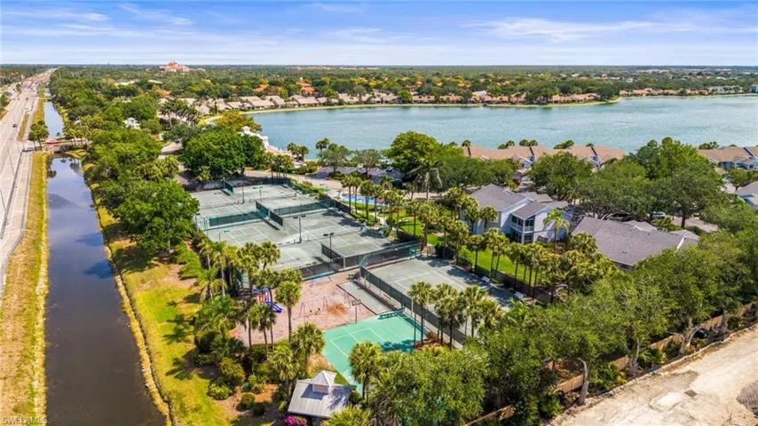 Enjoy serene lake views from this 2-bedroom, 2-bath, condo in sought-after Lakeside of Naples. This 2nd floor unit with 1,249 square feet of living space is bright and spacious with large sets of sliders and windows that allow lake views from nearly every room. Neutral tile and beautiful wood floors can be found throughout. A spacious kitchen features ample cabinetry and stainless steel appliances. The spacious primary suite offers an en-suite bath with dual vanities and a walk-in shower. Additional highlights include plantation shutters in both bedrooms, in-residence laundry, and a dedicated carport. Residents enjoy access to an array of amenities including billiard, bocce, a clubhouse with sauna, weight room, library and game rooms, two pools, a spa, tennis courts, shuffleboard, and basketball. Situated in the heart of Naples off Airport Road, quick access to top-tier dining, shopping, beaches and water access can be yours!