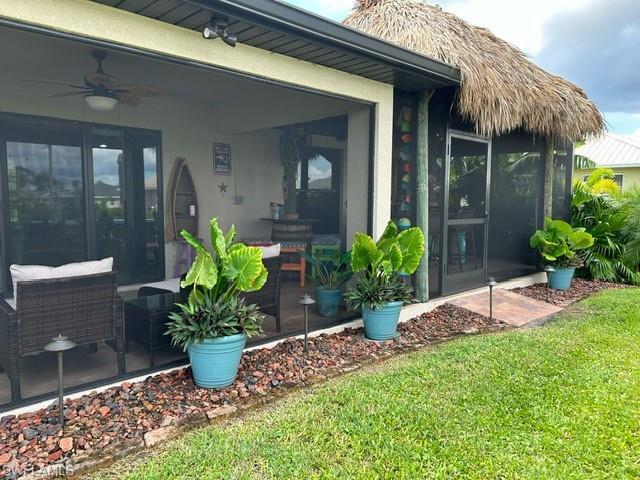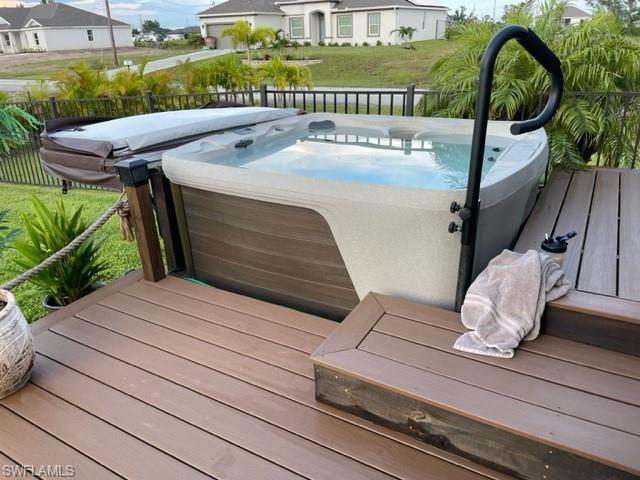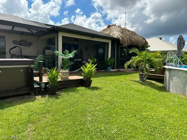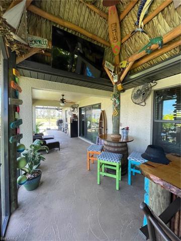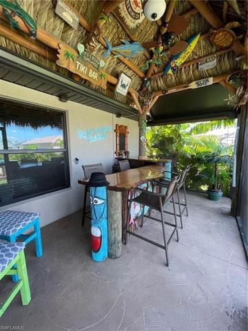 Beautiful Tropical Oasis. Looking to be on a permanent vacation, look no further. This home features Brazilian upgraded counter tops in the kitchen and baths with travertine backsplash featuring Bristol York cabinetry with soft close doors and drawers. The kitchen cabinets also have remote control under counter lighting and crown molding. The Master bath boasts Travertine walk in shower w/antique brass fixtures. The landscaping gives the feel of being on a tropical island featuring a beautiful screened in Tiki with 2 live edge bars and a whiskey barrel table along with beautiful floors that have a custom beach sand appearance. The yard has been upgraded with irrigation, tropical trees and shrubbery along with 4 banana trees. Many of the Christmas palms have solar up lighting for that Tropical ambiance. Plenty of storage w/3 included outbuildings. The 12’x15′ pool is a perfect place to cool off and enjoy your Oasis. You will also enjoy the new, 6 person Hot Tub w/beautiful step, style entrance deck. The entire back yard is fenced and the screened garage has a mini split AC for a perfect work space or mancave. You must see this home in person to see all its upgrades and features.