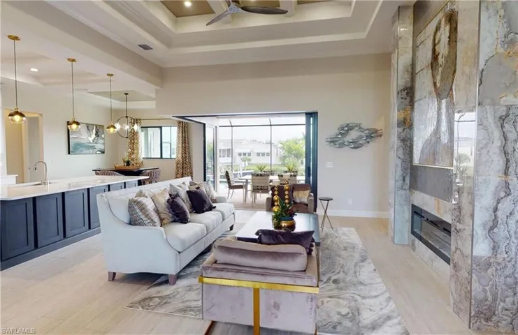 Under Construction. Welcome to Windward Isles, Punta Gorda’s newest maintenance-free waterfront community featuring 24 luxurious sailboat-access homes! This under-construction, never-lived-in residence offers a modern split-bedroom floor plan with high-end finishes and exceptional attention to detail throughout.This spacious home features three generous bedrooms, three full bathrooms, a formal dining area, massive great room, and a versatile bonus den/office. The gourmet kitchen is designed for both style and functionality, including 42” wood upper cabinets with accent glass inserts, a tiled backsplash, granite countertops, and a full stainless steel appliance package including a hood, oven, microwave, cooktop, refrigerator, and dishwasher. The luxurious master suite includes an expansive master bathroom with dual vanity, tiled shower, and large walk-in closet. Interior highlights include porcelain tile flooring throughout, an electric built-in fireplace, tall ceilings with recessed trays, coffers, and grids, crown molding, designer fixtures, and 5” baseboards. Step outside to your private outdoor oasis featuring a covered paver lanai, heated pool and spa, and 90-degree sliding glass doors that maximize natural light and views of the picturesque canal. The exterior boasts a seawall with boat lift and wood dock, perfect for boaters, along with a paver driveway and walkway, stone accents, high-impact windows and doors, tiled roof, irrigation system, and lush landscaping. Windward Isles offers a maintenance-free lifestyle with HOA-covered services including lawn care, irrigation, tree trimming, pest control, and fertilization. Located just minutes from Charlotte Harbor and the Gulf of Mexico, with easy access to Boca Grande, Fisherman’s Village, and Downtown Punta Gorda, and close to dining, shopping, and entertainment, this is the ideal place to call home. Seasonal rentals are allowed, making it an excellent investment opportunity. Additional homesites and models are available. Developer financing is available at 5.99% for a 30-year fixed rate.