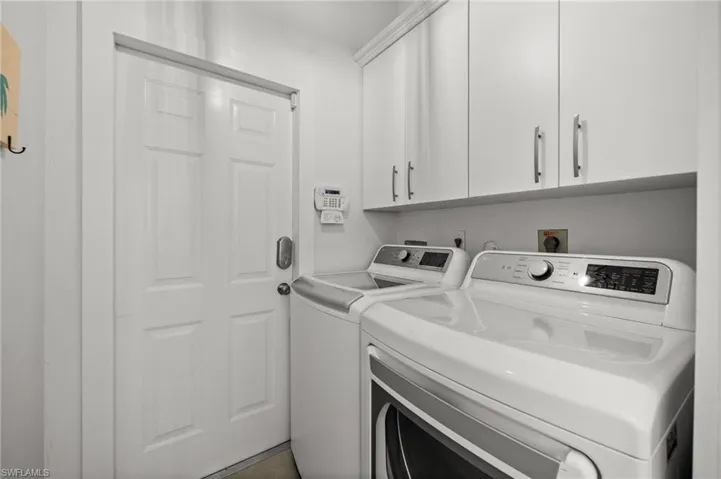 Step outside to a private backyard retreat designed for the Naples lifestyle. The heated saltwater pool, completed in 2019, features a sun shelf and waterfall element – perfect for relaxing in the Florida sunshine. The pool enjoys unobstructed, direct sun exposure, while the fully screened lanai offers a comfortable space for dining and lounging, giving you the best of both worlds. The fully fenced yard provides privacy and flexibility, and the irrigation well helps maintain lush landscaping efficiently.