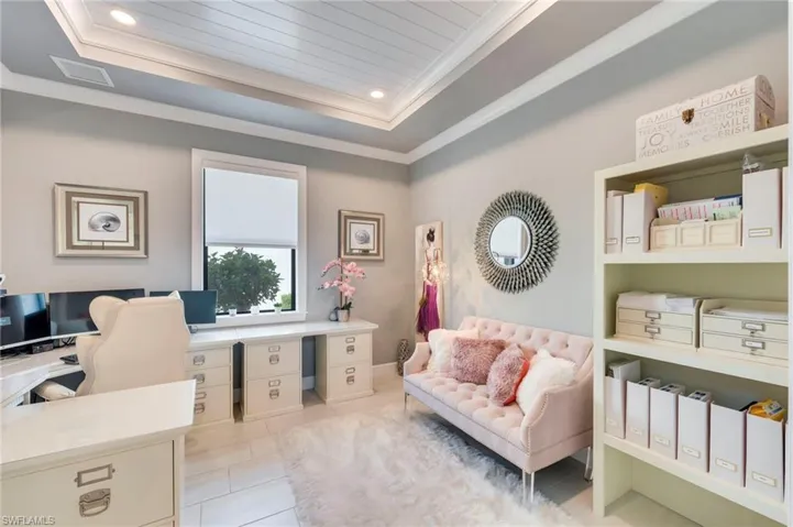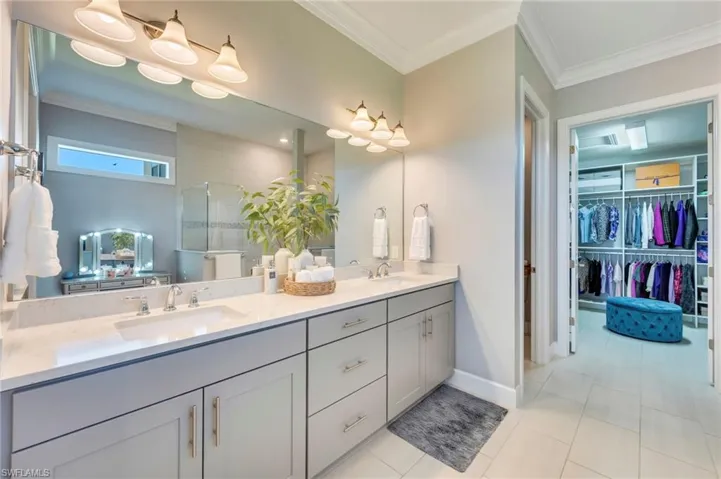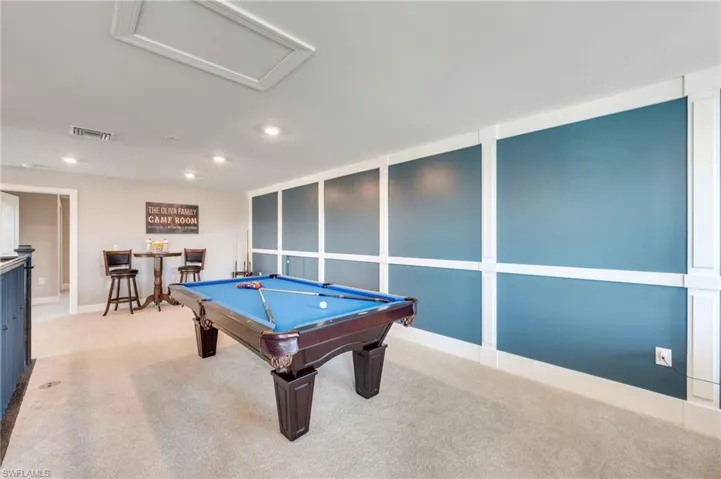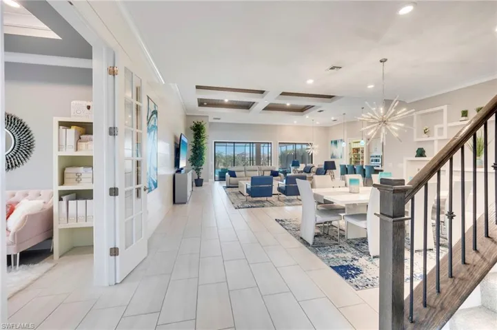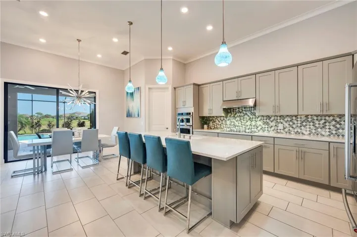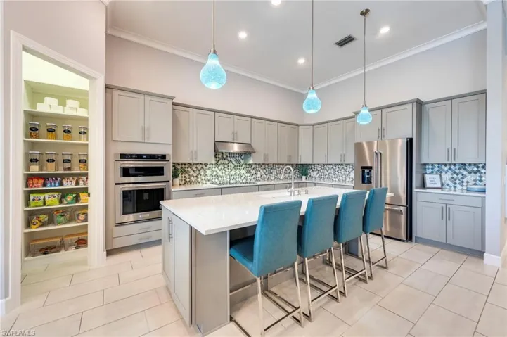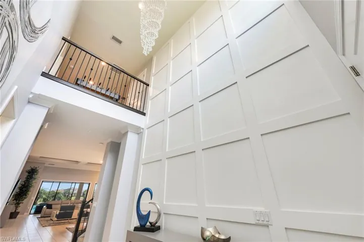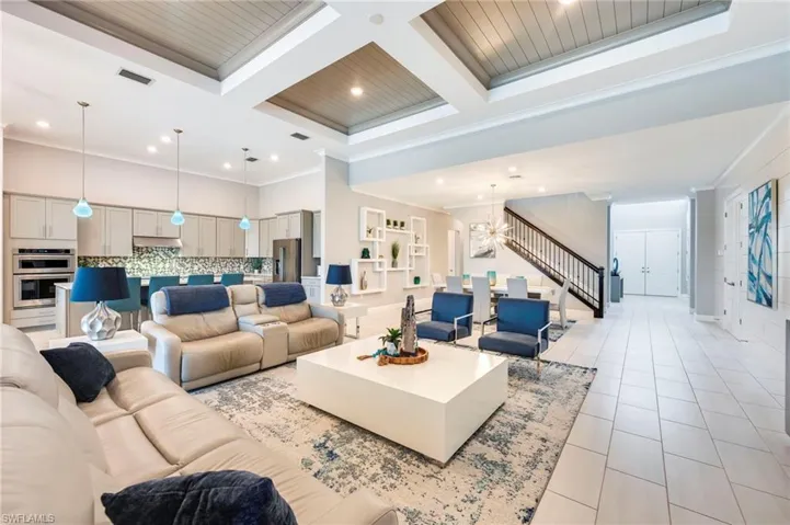 Set on a private OVERSIZED cul-de-sac homesite in The Place at Corkscrew, this STONEWATER WITH LOFT by Pulte Homes offers nearly 4,000 sq ft of luxury living with 4 bedrooms plus a den, 4 full bathrooms, and soaring 12-foot ceilings. Inside, you’re welcomed by a dramatic 2-story foyer with a MODERN CRYSTAL CHANDELIER and CUSTOM TRIM WORK, SHIPLAP, BOARD AND BATTEN, and CROWN MOLDING throughout. The OPEN CONCEPT design flows from the formal dining room to the great room with COFFERED CEILINGS and out to the lanai. The gourmet kitchen features QUARTZ COUNTERTOPS, UPGRADED BUILT-IN KITCHENAID APPLIANCES, an extended island with storage on both ends, and a CUSTOM WALK-IN PANTRY WITH BUILT-IN BAR. The first-floor primary suite includes a CUSTOM FEATURE WALL, TRAY CEILING WITH FAN, pool views, dual vanities, an oversized walk-in shower, and a DREAM CUSTOM CLOSET. Two additional guest bedrooms with full bathrooms are on the first floor, including a front bedroom with BAY WINDOW and CUSTOM CLOSET, plus a private den with double French doors and tray ceiling. Upstairs, the loft, 4th full bedroom, and bathroom create the perfect space for MULTIGENERATIONAL LIVING or a TEEN RETREAT, with a MASSIVE WALK-IN STORAGE CLOSET.