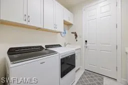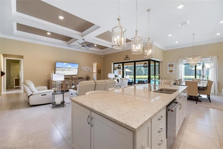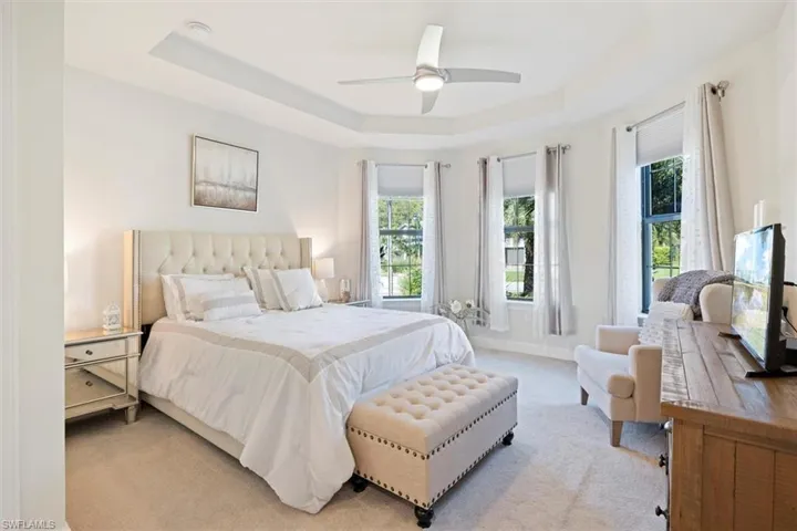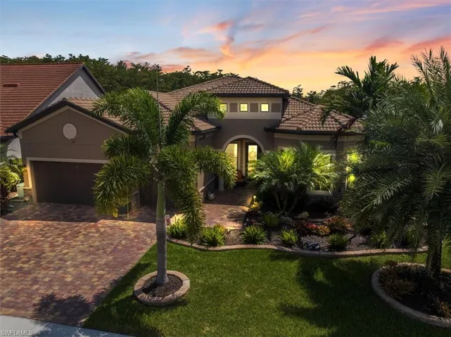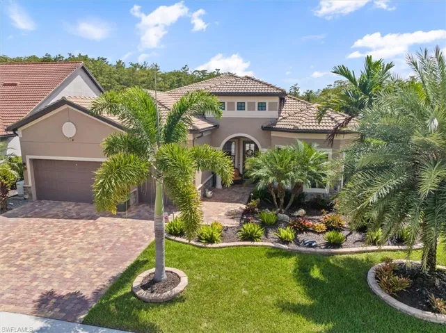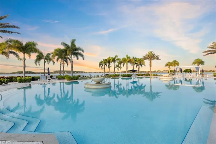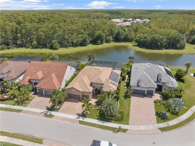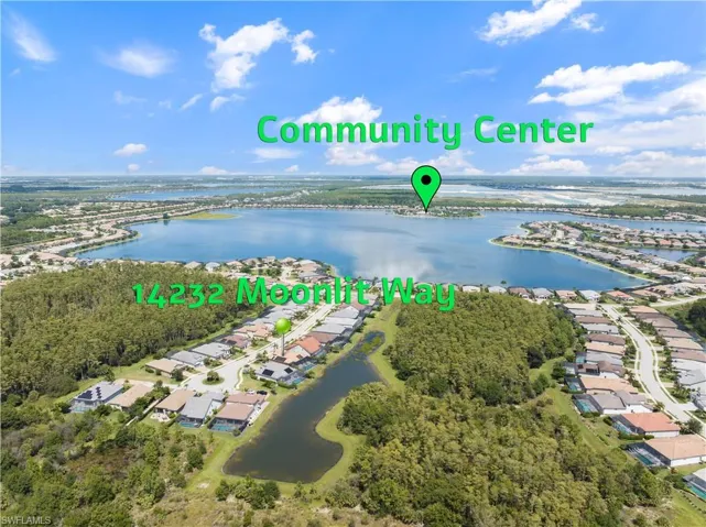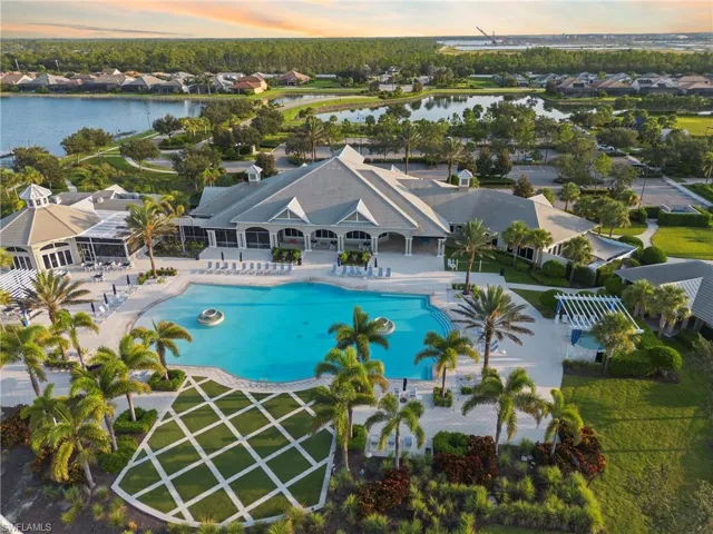 Low traffic cul-de-sac. NO CDD OR CLUB FEES. NOT IN A FLOOD ZONE. Amenity island overlooking the 240-acre lake features: Zero edge pool w/fountains, spa, indoor/outdoor restaurant & bar, firepits. Kayak & canoe launch, fishing pier, boating (non-gas), 24-hr state of the art fitness, movement studio, basketball, tennis, bocce, ping pong, pickle-ball courts, playground, picnic area. Close to FGCU, Airport, Hertz Arena, open air shopping & dining.