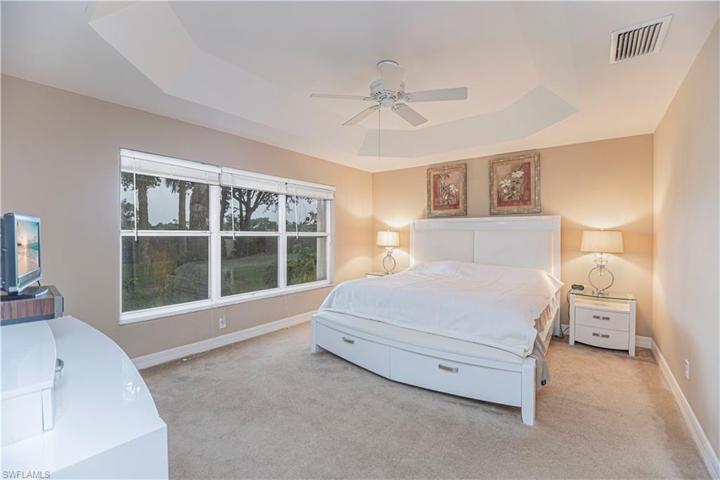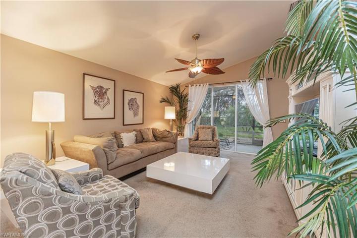 This popular model is 1774 sq ft with 2 bedrooms plus a DEN with 2 full baths. A home on a quiet cul-de-sac in a desirable gated community in North Naples. Enjoy the sunrise and golf course view from your Lanai. The large lot has plenty of room for a pool and fenced yard. The kitchen is bright & light with a cozy breakfast nook and bar area. The home has vaulted and tray ceilings throughout. The master bedroom is large with lots of natural light and oversized walk-in closet. The house has Accordion Hurricane Shutters for peace of mind. Saturnia Lakes is an award-winning community that offers resort style living with 2 heated pools, hot tub, fitness room, dance studio, internet cafe, saunas, billiards room, ballroom, clay tennis courts, playground, basketball court, and putting green. With A rated schools and minutes from shopping and restaurants this is a must-see home.