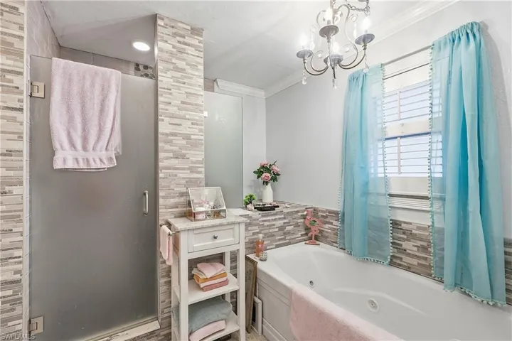 Welcome home to this spacious and stylish 4-bed, 2-bath pool home perfectly positioned on an oversized corner lot surrounded by mature, tropical landscaping for exceptional privacy and curb appeal. Evenings come alive with Hollywood-style pool lighting, a huge screened lanai, and a full pool cage—the ideal backdrop for relaxing or entertaining. Inside, you’ll find plank tile flooring throughout and a bright, open vaulted great room that creates an inviting, airy feel. The updated kitchen and baths feature granite countertops, soft-close cabinetry, and modern finishes that elevate the home’s overall style. The spacious primary suite offers true comfort with dual walk-in closets, plus a luxurious ensuite bath complete with a separate soaking tub and walk-in shower. Additional highlights include: Roof only 3 years old, Oversized, fully fenced corner lot with lush mature landscaping. Close to shopping, schools, medical facilities, dining, and everyday conveniences. This home blends modern updates, indoor-outdoor living, and a prime location—everything buyers are looking for in Southwest Florida living.