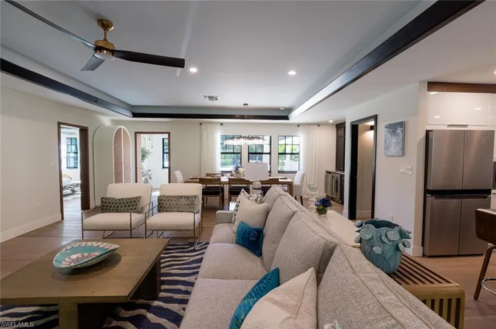 Rare opportunity to own a fully reimagined, custom-designed 4-bedroom, 3-bath residence remodeled and completed in 2026 by an award-winning designer and custom homebuilder. Thoughtfully taken down to the structure and rebuilt from the ground up, this dual owner’s suite home blends striking mid-century modern design with high-end finishes and meticulous attention to detail—nothing was left untouched. Another noteworthy feature is that this home saw no flood water from Hurricane Ian.
