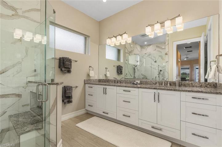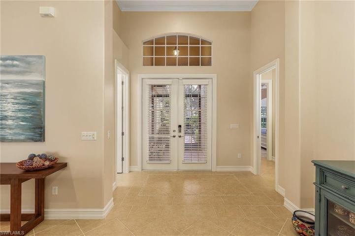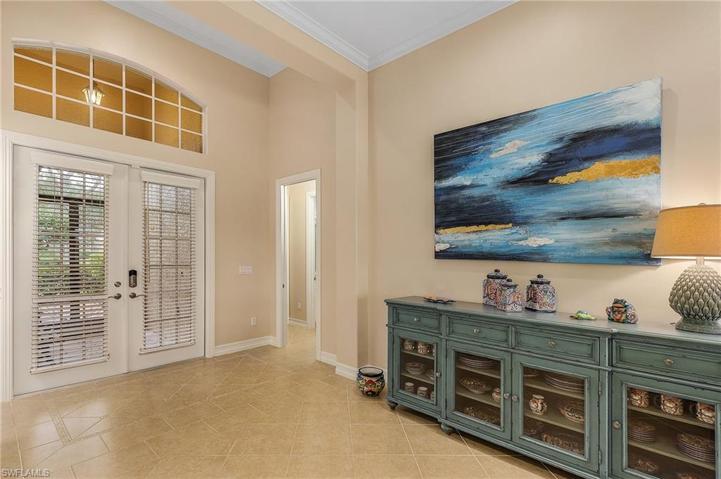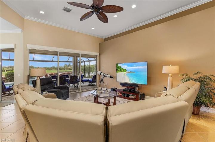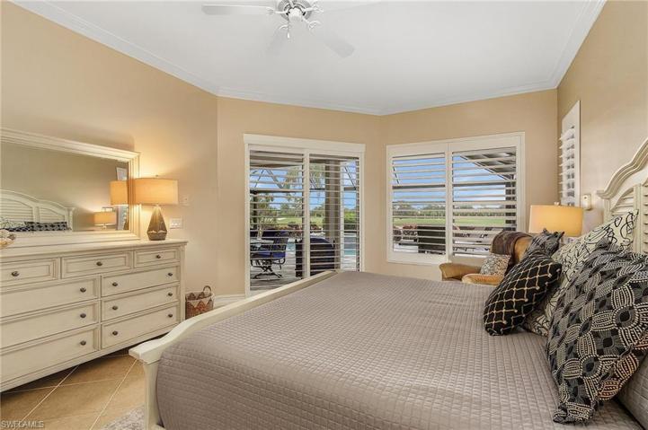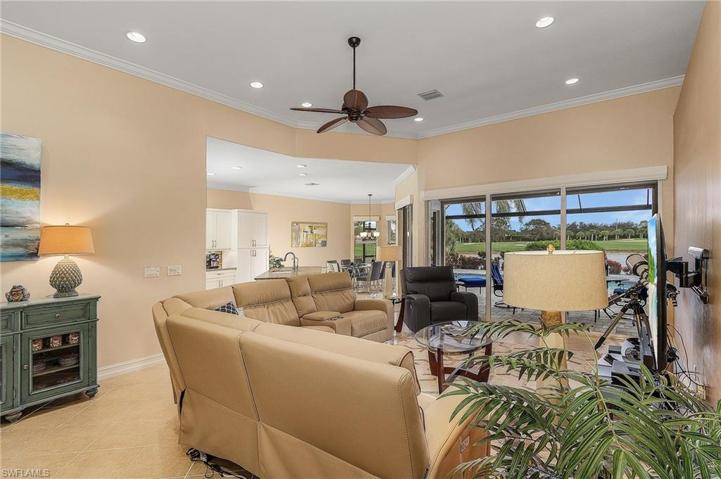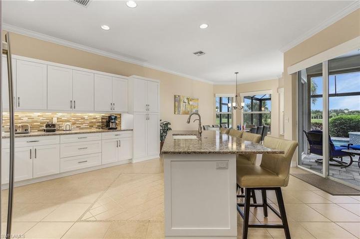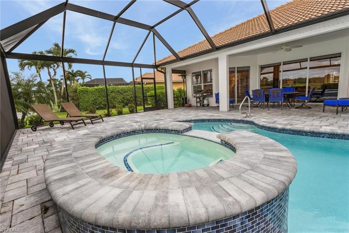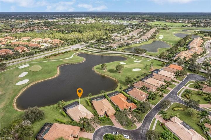 Spectacular View. This property is updated inside and out. Upon entering you will feel the open airiness of the great room and kitchen. The totally renovated kitchen boasts stainless appliances, induction cook-top, eat at breakfast bar, generous dining area looking overlooking the lanai. The Master bath is also totally updated, new tile, new custom shower enclosure and double vanity sinks. This split floor plan has 2 large bedrooms with a full bath between for guest privacy. The lanai has also been completely renovated, new pavers, pool refinished with a spa, large picture window with a wide water view of the lake and beyond the lake, the 7th and 8th holes of the Mustang Golf Course. All pool equipment is new as well. There are automatic storm shutter on the lanai and impact windows on the back windows, automatic storm shutter on the front door, accordion shutters are on the side windows and are easily closed and opened as needed. There are automatic roller blinds along the sliders and dining area windows. The AC is new and there are outdoor cameras for added security. This is a move-in ready home.