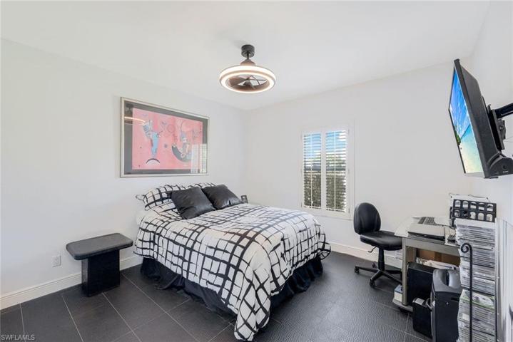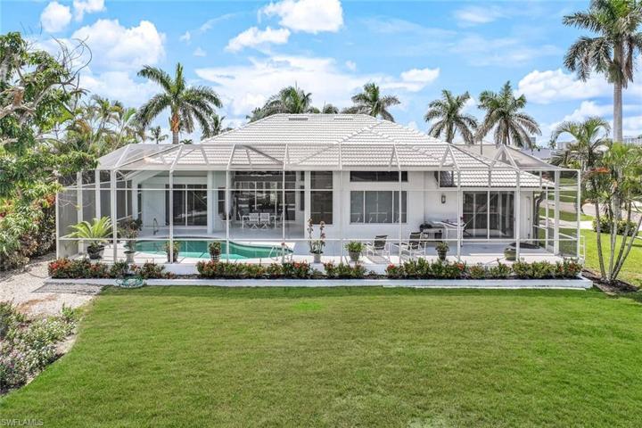 One of a kind, updated three bedroom two bathroom waterfront home with SUNNY pool, oversized lot, and quick access to Marco River and Gulf of Mexico! Residence showcases Italian influence throughout with imported porcelain tile flooring from Bologna Italy, Italian lighting, Hunter Douglas motorized vertical blinds in living and family rooms, wood plantation shutters in all bedrooms, beautiful, solid surface countertops, and custom modern furniture which is negotiable. Ideally located on an oversized waterfront lot providing peacefulness and serenity complete with boat dock and 16,000 pound boat lift. Quick boating to Marco River. Entertaining is a breeze with the large, screened lanai complete with a private heated SUNNY pool with light show on demand. The gorgeous white sands beaches Marco Island is famous for are just a short distance away as is plentiful shopping, dining, and entertainment. Truly a Paradise found!