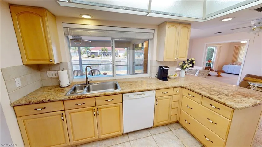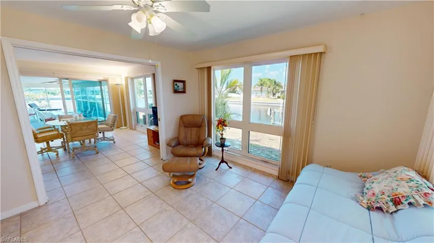 PUNTA GORDA ISLES WATERFRONT…This charming property offers over 2000 square feet of comfortable living space, featuring 3 bedrooms and 2 bathrooms. Located on a quiet cul-de-sac in Punta Gorda Isles, this affordable waterfront home comes with a boat dock and boat lift, situated on 108 feet of seawall, making it a boater’s paradise. Boating, Fishing or Beaching are minutes away from your dock. Seawall maintained by the City as part of your property taxes. The large lanai provides a perfect spot for outdoor living and entertaining, with ample room to add a pool if desired. The updated kitchen boasts style with wood cabinets and granite, while tile flooring throughout the home offers durability and easy maintenance, complemented by carpeting in the primary bedroom and living room. The primary bedroom, dining room and family room all offer slider access to the large lanai, enhancing the indoor-outdoor living experience. Family room features a built in coffee bar or wine bar with sink. This mostly furnished home (with some exclusions) is ready for you to move in and start enjoying the Florida lifestyle. Impact windows and reinforced garage door create a comfort level for Tropical weather. Mango and Avocado trees are an added bonus. Don’t miss out on this exceptional buy in Punta Gorda Isles—schedule a viewing today and make this waterfront gem your new home! ****PLEASE ENJOY THE 3D VIRTUAL TOUR****