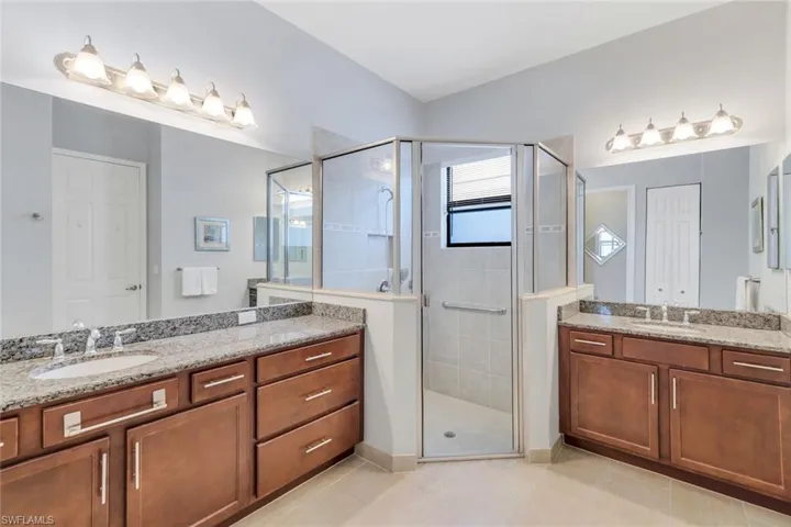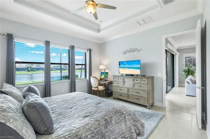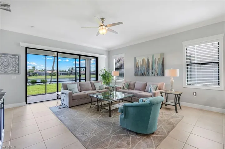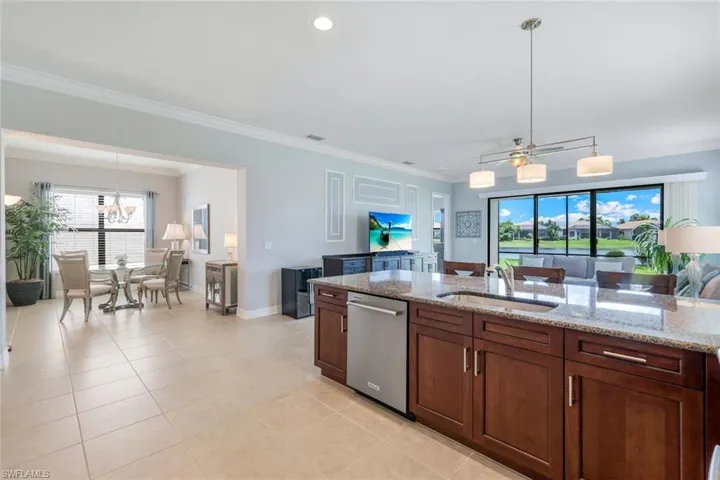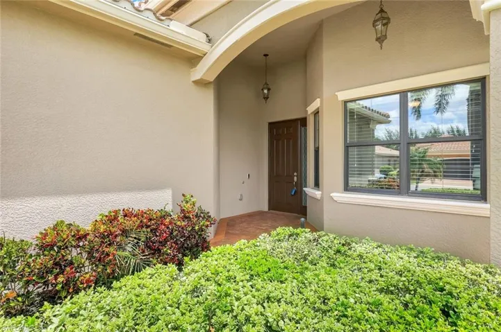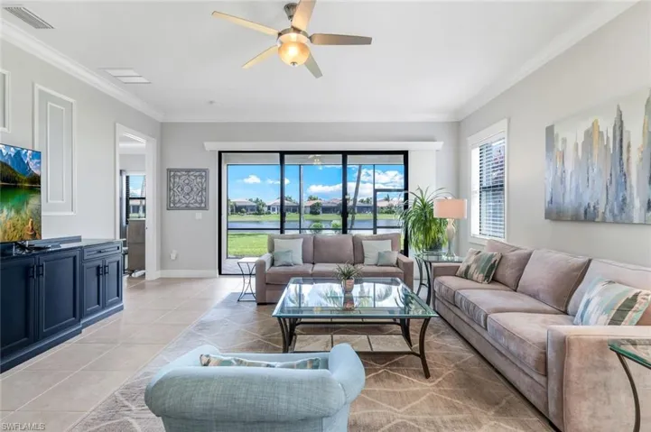 Situated on a premium waterfront lot with extra space between neighbors, this meticulously maintained home invites you to relax under expansive azure skies reflected in the tranquil lake just beyond your lanai. Designed with everyday comfort and effortless entertaining in mind, the open-concept layout connects a spacious great room—enhanced by two extra windows and a custom built-in—with a light-filled kitchen and elegant dining area. The well-equipped kitchen features an oversized dining counter, stack stone backsplash, accent lighting, a deep single-bowl sink, stainless steel appliances (including a newer dishwasher), and ample cabinetry, making meal prep and socializing equally enjoyable. The primary suite, with serene lake views, boasts two walk-in closets and a well-appointed bath. Two additional guest bedrooms provide flexibility for visiting family or a home office. Rich trim and molding details throughout add character and charm. A beadboard-accented laundry room with sink, cabinetry, and washer/dryer, elevate the home’s appeal and functionality. Whether you’re enjoying the yard from the screened lanai or dreaming up your future poolside escape, the outdoor space offers endless potential. And when summer storms roll in, enjoy peace of mind with a whole-home generator powered by three 120-gallon propane tanks. Electric Storm Smart hurricane screens offer privacy and protection on the lanai, while accordion shutters on the windows enhance your storm readiness. Located in Riverstone which offers a social, vacation-inspired lifestyle for all ages. Recreation area includes a fitness center, social hall, resort style pool, lap pool, spa, 5 lighted tennis courts, outdoor basketball/pickleball, full indoor basketball court, tot lot, children’s water play area & game room & an activities coordinator. Ideally situated near Naples’ pristine beaches, world-class shopping and dining, and top-rated golf courses, this home offers the perfect blend of relaxation, recreation, and easy access to Southwest Florida’s premier attractions.