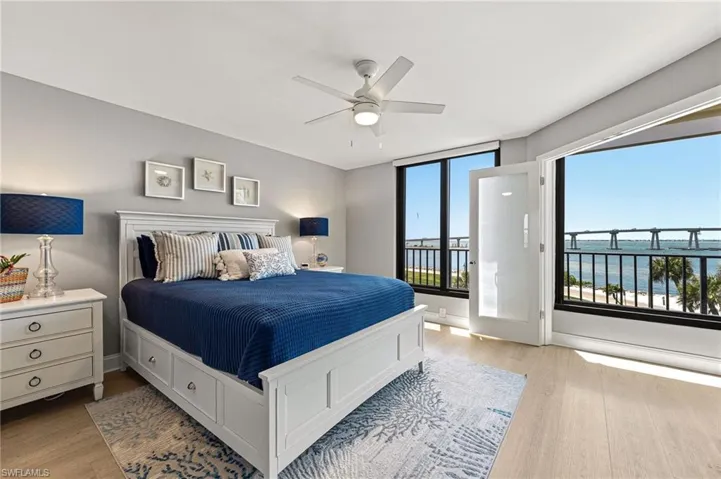 SIZZLING SUNSETS!! ABSOLUTELY THE BEST VIEWS in Southwest Florida!! This newly renovated two bedroom two full bathroom bay-front condo offers STUNNING VIEWS overlooking the Sanibel Causeway bridge featuring gorgeous sunsets every evening! Brand new HVAC system! This condo is offered TURNKEY FURNISHED and is ready for you to come and live your best life; just bring your toothbrush and a change of clothes and don’t forget your flip flops and that lost shaker of salt. Deeded under the building parking spot will keep your vehicle out of the Florida sun and there is private deeded under-building storage for all of your extra beach toys. Plank style luxury vinyl flooring throughout the condo feels soft and coastal. The gorgeous Capiz chandelier over the dining room feels fresh and beachy! New ceiling fans provide a cool breeze. Both bathrooms have been completely renovated for modern elegant living with the primary bathroom featuring dual sinks for your convenience. Spacious kitchen features attractive countertops and all new appliances. Amenities include tennis, pickleball, shuffleboard, swimming pool, hot tub spa, and several restaurants and bars. Enjoy walking the miles of tropical paths throughout the Punta Rassa community. Restaurants within walking distance are the Bimini Bait Shack, Charley’s Cabana, Courtside Steakhouse, and the exclusive yacht club restaurant/bar which is private to Punta Rassa residents and Yacht Club members. Take a quick 5 minute drive and you are on Sanibel Island or 15 minutes the other way puts onto Fort Myers Beach, which is well known for its powder-sugar white sandy beaches! And most everyone agrees that Sanibel Island is the undisputed Shelling Capital of the World! Drive just 5 minutes down Summerlin road and you arrive at the Publix shopping plaza with numerous shops to get you everything you could possibly need. The International Airport is an easy 30 minute drive from Punta Rassa. You can lose yourself and all your problems while watching an endless parade of boats/yachts/ships cruise by as they head out into or return from the Gulf. Schedule your showing today.