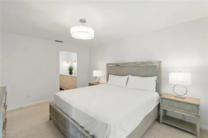 Fully furnished, move-in ready and pet-friendly in the heart of Pelican Bay. This beautifully renovated second-floor residence in Laurel Oaks delivers soaring vaulted ceilings, two screened lanais, and a bright split two-bedroom, two-bath layout that lives larger than its size. Offering updated kitchen and baths, and big-ticket items are handled with a newer air conditioner, all new interior piping and recent community improvements including new roofs, carports and refreshed landscaping. Laurel Oaks has a sparkling pool, spa and social room in a quiet, park-like setting. Pelican Bay includes a full wellness lifestyle, offering two private beach clubs with beachfront restaurants and chair service, the beach tram, pickleball and tennis, miles of walking and biking paths, and a full fitness and wellness center. All this minutes to Waterside Shops and Artis–Naples, with Mercato a short drive away. Priced at the starter end for Pelican Bay, this is a rare value play for buyers who want turnkey living, a calm, low-rise vibe and the active Pelican Bay lifestyle.