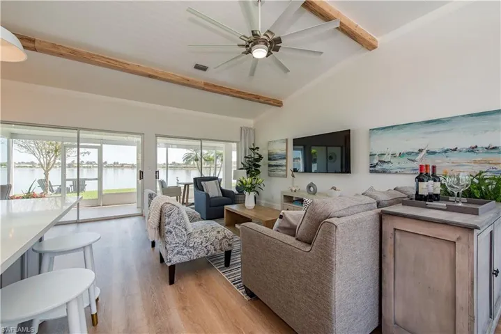 This home is available starting in MAY for a longer term lease, 6 months min. preferred. One of our most popular rental homes, you can enjoy a front-row seat on the largest natural spring-fed lake in Naples, with magnificent colors mirrored in the water and a peaceful, quiet location. A screened-in lanai has outdoor dining and a sectional seating area to gather and relax while you have your morning coffee or cocktails by the water. This home has a split floorplan with a vaulted great room and a privately located owner’s suite (king bed) with great lake views, high volume ceiling, spacious walk-in closet & remodeled bathroom with Euro-glass shower, soaking tub, double vanity, and large mirror. Two guest bedrooms (queen in one, two twins in the other) share a bath with a walk-in shower, modern vanity, and abundant lighting. The kitchen has a large island with quartz counters and bar seating, stainless appliances, and an eat-in kitchen. Vaulted shiplap paneled & beamed ceilings give a light and airy look throughout. The home is turn-key furnished and fully provisioned…including bikes, beach towels, cooler, beach chairs, tennis and pickle ball racquets, and everything you need to enjoy paradise in Naples. Emerald Lakes is quiet and private, yet literally in the middle of everything you could ever want, with friendly residents and amenities such as a community pool, night-lit tennis and pickleball courts, bocce ball, fitness room, and fishing pier. So grab it now! Just 12 min. from beaches and 6 min. from Mercato. DOG ALLOWED, with approval and an additional pet deposit. ALL UTILITIES ARE INCLUDED!