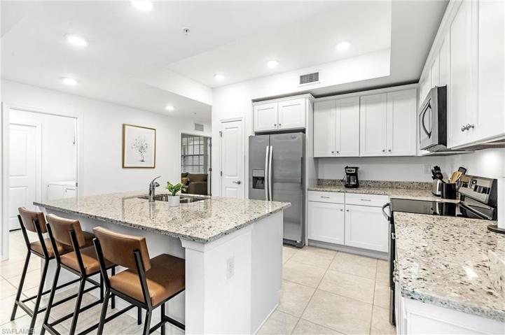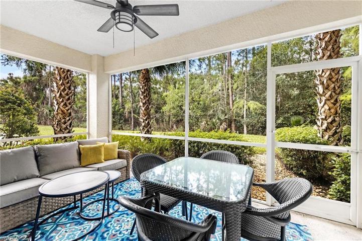 Rare opportunity to own a first floor end unit in Palazzo at Pelican Preserve! WCI built, Amalfi floorplan is professionally decorated, boasts preserve views and is being sold TURNKEY! This light, bright and airy unit boasts 20″ tile in the living areas and luxury vinyl in the bedrooms. The kitchen offers stainless steel appliances, soft close cabinets, pantry and granite countertops. The owners suite has sliders that walk out to the lanai, large walk in closet, dual vanities and oversized shower. The third bedroom is set up as a flex room. This building is conveniently located right next to the Palazzo community pool. Storage room and 1 assigned carport space. Pelican Preserve is ranked one of the nation’s top 55+ active lifestyle communities and offers activities for everyone including: 12 pickleball courts, 8 tennis courts with pro-shop, library, card room, spa, indoor pool and locker rooms, spectacular gym facility with classes, arts and crafts, woodworking, movie theater, outdoor amphitheater, Flip Flops pool side restaurant and Destinations restaurant, gardening center, dog park, walking and biking trails and much more. Golf cart friendly community. Golf is optional.