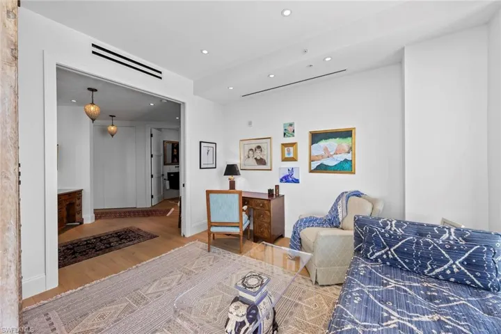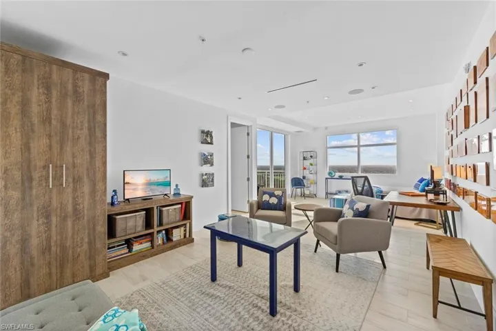 Spectacular END unit at sought after Seaglass, one of the newest high-rise towers at Bonita Bay will surely please even the most discerning buyer. Breathtaking views abound in this 18th floor residence featuring floor to ceiling windows to showcase the panoramic views from sunrise to sunset even catching the elusive green flash while overlooking the Gulf of Mexico, Estero Bay, Sanibel and Captiva Islands in the distance. As you enter through your private elevator you will find over 3,400 square feet of luxury living, beautifully decorated and upgraded with quality craftsmanship and materials including Italian oak flooring, custom cabinets, quartz and marble counters, Gaggenau appliances, Subzero chef quality refrigerator and freezer and a Dimplex fireplace. The owner’s modified floorplan allows for expanded master closet, intimate living room and dining room areas. This space lends itself to comfortable elegance in a charming setting where you can relax and entertain your friends and family. The master bedroom suite with views over the Gulf has access to the lani and features a large expanded walk in closet and the bathroom features a hydro therapy bathtub and huge walk-in shower. The reconfiguration creates spacious guest quarters PLUS separate in-law suite, studio or home office with a private entrance. The primary balcony has its own gas BBQ and assures to be the gathering place for spectacular sunsets, morning coffee, nature watching, dining or marveling in the peaceful tranquility of your own slice of paradise. Live the Florida lifestyle to the fullest here at Bonita Bay! Your pet friendly, social, active community offers ALL the amenities such as 24-hour doorman and manned front desk for added peace of mind, Seaglass resort style pool and spa with grill areas, rooftop terrace, theatre room, fitness center, clubhouse plus a plethora of options…golf, boating, kayak, walking/biking paths, nature trails, pickleball, tennis, bocce, basketball, private Bonita Bay Beach and a full activities calendar. Just outside the gate you are in a prime central location just minutes to the white sand beaches, SWFL International Airport, Naples, Fort Myers and all the shopping, dining, entertainment you could desire….this home checks all the boxes and we saved the BEST for last… Calling all CAR ENTHUSIASTS…here is a coveted and rare PRIVATE, ENCLOSED 2 car garage with convenience…easy, straight drive in. The owner says it’s one of the BEST in the building and has been offered $200k to sell…it’s INCLUDED! What more could you want?