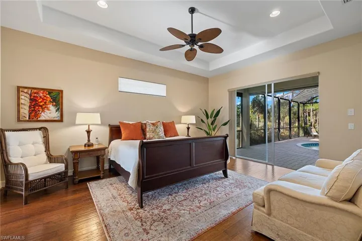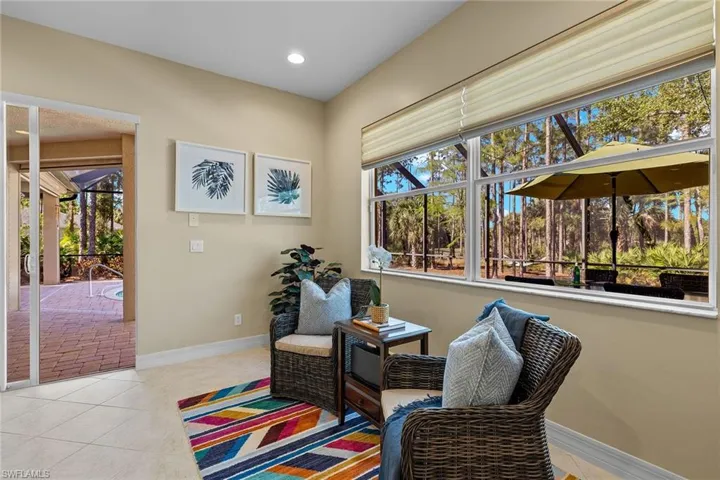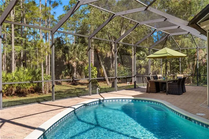 Embrace the allure of serene living in Golden Gate Estates with this spacious pool home, majestically poised on a bountiful 2.5-acre canvas of lush Florida landscape. Nearly 1.5 acres of cleared and fenced land are perfect for outdoor activities, gardening, or extra storage. The primary bedroom features sliders to the screened-in lanai, dual walk-in closets, dual vanities, a soaking tub, and tray ceilings. The split-bedroom floor plan allows for the utmost privacy for visiting family or guests. The gourmet kitchen boasts an island, breakfast bar, and a new 2023 range and dishwasher. Improvements include a 2018 roof, 2017 AC, 2023 water heater, a reverse osmosis water system in the kitchen, a whole-house water softener, engineered hardwood floors in the bedrooms, roll-down hurricane shutters on the lanai, and a security system with cameras. The pool has western exposure to enjoy beautiful Southwest Florida sunsets and a large paver lanai with plenty of entertaining space. This home is located just moments away from shopping and dining.