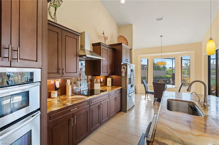 In the backyard, you can truly embrace the Southwest Florida lifestyle. The expansive lanai is ideal for relaxation, complete with a heated pool, inviting seating areas, and your very own private boat dock equipped with a seawall and electric hook-up—everything you need for your next Gulf adventure.