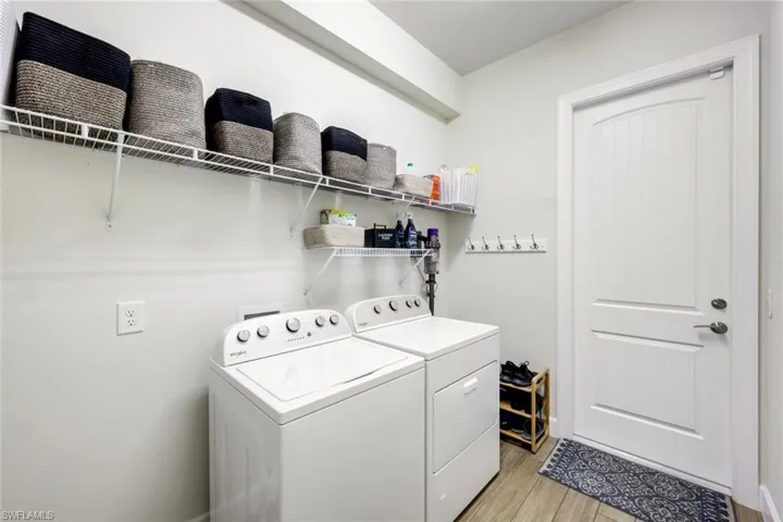 floors and organizers including a lift bar to raise golf bags and bicycles up to ceiling height. Located on an extra-large lot ensures privacy, creating a personal sanctuary within this vibrant community. Full Time Sports Director oversees the state-of-the-art sports complex featuring Pickleball, Bocce, and Tennis. Two clubhouses offering fine and casual dining at both beautifully appointed restaurants. Unwind in the resort- style heated pool, lap pool, and spa, or gather with friends at the lively outdoor Tiki Bar. The cutting-edge fitness center and movement studio provide endless opportunities to stay active including Yoga, Pilates, Zumba and water aerobics—all within a secure, gated enclave that feels like paradise. Full Time Social Activity Director manages the fun filled social activity calendar. Tucked away in one of Naples’ most sought-after communities, this hidden gem offers the perfect balance of tranquility and accessibility. World-class shopping, dining, and entertainment are just minutes away, ensuring that every convenience is at your fingertips. Head West on Vanderbilt Beach Road and find white sandy beaches filled with seashells. No CDD in this community and low golf and HOA fees make this community of only 560+ homes, a real winner! Schedule your private showing today and experience the pinnacle of elegant Florida living. Your DREAM home awaits!