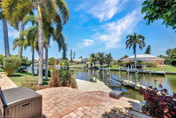 ATTENTION BOATING AND FISHING ENTHUSIASTS – This Beautiful Gulf access pool home is situated on the 100-ft wide Santa Fe Canal in Southeast Cape Coral. With only 1 bridge to go under, you are only 40 minutes to get out to the Gulf of Mexico. This 3 Bedroom, 2 Bath, Pool Home has been Updated and Remodeled with over $100,000 in Upgrades and Improvements. The Kitchen features Solid surface Counters, Wood Cabinets with Pull-outs, a Pass-through Window to the Lanai, Pantry, and New Stainless Steel Kitchen Appliances in 2021, including an Induction Stove. You will Love the Primary Suite with a Spacious Bedroom, Beautifully Updated Bathroom, Stunning Walk-in Shower with Multiple Shower Heads, Soaking Tub, Double Sink Vanity with Mahogany Counter and Copper Sinks, Good-sized Custom Closet, and Direct Lanai Access. 3 sets of Pocketing sliding glass doors expand your indoor living to the Large Lanai and Pool area outdoors, Perfect for Entertaining and Relaxing, whether you are swimming in the Saltwater Pool, enjoying the Spa, spending time with friends and family, or just soaking up the Florida sunshine. There is also an Outdoor Shower and a Pool Bath, as well as an Air Conditioned Office accessible from the pool area.The New High-end Composite Dock and 10,000 lb Boat Lift were both done in 2024. You also have the Convenience of a Kayak Launch. Additional Updates and Features include: New Washer 2026, New Upgraded Ceiling Fans 2025 and 2026, New Exterior Paint 2025, New AC Split System in Office/Storage room 2025, New AC 2024, Remodeled Primary Bath and Guest Bath 2024, All New Impact Windows 2023, New Multi-Stage Pool Pump and Filter 2023, New Roof 2021, New Water Heater 2021, New Fence 2021, New Carpet in Guest Bedrooms 2021, New Lanai Screens 2021, New Weatherhead 2021, Diagonal Tile, Crown Molding, Custom Bedroom Closets, Wood Shelving in Pantry, Dog Run, and Drop-down Ladder for Attic Access. The home was Repiped by the previous owner in 2008. All Bedrooms, Kitchen, Living Room, Family Room and Lanai are equipped with ceiling Fans. The Home has never flooded, is designated in X Flood Zone and does not require Flood insurance. All Utility Assessments are paid in full. Convenient location with easy access to Fort Myers, Southwest Florida International Airport, Punta Gorda Airport, and all of Cape Coral. Close to dining, shopping, entertainment, and schools.