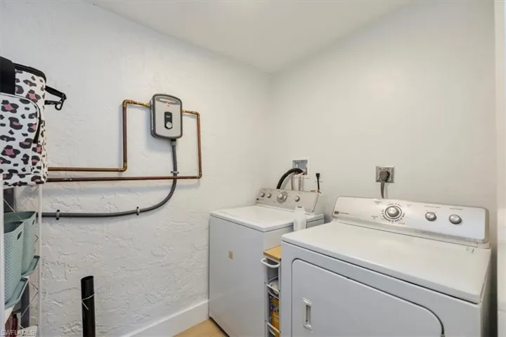 “Live Life Beautifully In SWFL” with this charming two-bedroom, one-bathroom duplex. Recently remodeled, this coastal-inspired bungalow blends natural finishes with a contemporary design and a touch of bohemian flair, creating a warm and inviting retreat.