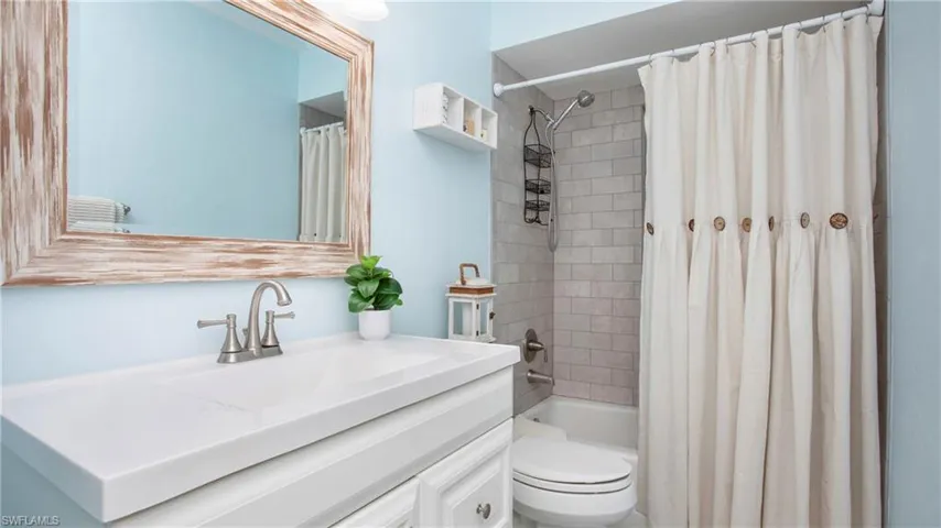 Undeniably a great opportunity in Bonita Springs! Welcome to this beautifully maintained and thoughtfully upgraded residence in the heart of Bonita Springs, offering exceptional value, timeless charm, and modern convenience. Every detail of this home has been carefully curated to deliver comfort, style, and peace of mind, making it a standout property at an incredible price point. Here, the pride of ownership and the value in improvements is evident. The freshly painted exterior is complemented by tropical landscaping, hummingbird-friendly plantings, and a recently installed brick paver driveway that easily accommodates three cars wide and flows seamlessly via a paver walkway to a serene backyard retreat. Enjoy evenings around the firepit or tend your garden box surrounded by a 6-foot vinyl privacy fence and lush Calusia hedge, creating a private and peaceful oasis. This home is built for both everyday enjoyment and storm-season confidence. Equipped with a durable metal roof, impact glass windows and doors, and a hurricane-rated garage door (with a Smart MyQ opener), it’s as ready as it is reliable. A brand-new AC system installed in June 2025, along with a RING doorbell and integrated security lighting/camera, ensure year-round comfort and safety. Notably, the home is in the highly sought-after Flood Zone X with a current LOMA letter confirming its favorable designation after FEMA’s latest map update. There has never been any hurricane damage or insurance claims — a testament to the home’s location and quality. Step inside and fall in love with the inviting interior. The home features vaulted ceilings, recessed LED lighting, and new designer window blinds (motorized and manual) throughout. The open-concept kitchen stuns with a custom quartz island, newer stainless steel appliances, and shiplap accents in the sun-drenched Florida Room. The wood-look porcelain tile and bamboo flooring in the Florida Rm and bedrooms adds warmth and style, while fresh paint brings a crisp, move-in-ready feel. The primary suite is a true retreat, boasting a California Closet system, spa-inspired bathroom with a farmhouse-style sink and deep soaking tub, all tastefully updated. Bahama shutters on front and rear-facing windows add an elevated coastal flair, blending style and practicality. Additional features include: Auto Irrigation System on well; Seamless gutters and decorative stone border for improved drainage and curb appeal; Easy access to new restaurants, shopping, entertainment, all in one of the most exciting and growing areas of Bonita Springs WITHOUT an HOA! Whether you’re looking for a year-round residence, a seasonal retreat, or an investment, this home checks all the boxes. A HomeTech Home Warranty is offered with this home purchase, as well as the transferrable 10-year manufacturer warranty on the HVAC system and the pest control maintenance contract – all for additional peace of mind. Every detail has been thought of here! Quick closing available.