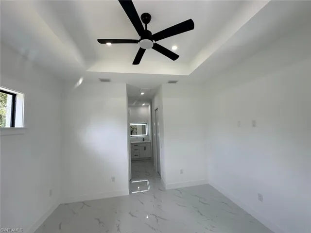 Brand new construction offering extra fixtures that you won’t find in another one. Sitting on 0.50 acres in a safe neighborhood and room on the side to pass the car to the backyard and/or build behind the house. Open floor plan, pavers driveway and entry, impact double entry doors, as well as impact windows and back sliding door, Security camaras around the home, sprinkles system, 10′ celling and 4 try celling at 12′. 8′ Interior doors and white porcelain tile flooring 32’x32′ throughout the entire home. Beautiful kitchen with white quartz countertop with a waterfall/island, wooden 42″ cabinets with crown and light molding, stainless still appliances and kitchen hood. Also has a walking closet in the master bath, double sink, modern LED mirror on bathroom, shower panel tower system rain and waterfall massage jet sprayer. Both showers with glass doors and panels. A/C with returns in each room for better A/C circulation. Ceiling fans in each bedroom and the living room. Garage is paining with an impact lateral garage door and Lanai ready for outdoor kitchen. Reverse Osmosis system installed