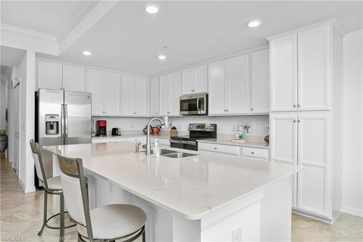 Welcome home! This beautiful 3rd floor 2 bed / 2 bath Birkdale condo is move-in ready. Interior features throughout are white and bright, providing a clean, crisp, luxury feel. Enjoy the serene lake and preserve view from your kitchen, living room, and screened in lanai. An exterior storage unit is located outside your front door and each unit has an assigned covered carport, with plenty of guest parking. Social membership to Treviso Bay offers endless amenities in an active community. Enjoy a fun day at the resort-style pool with hot tub, outdoor restaurant, and bar, or head to the full-service spa or fitness center. Tennis, pickleball, and bocce courts are available for free play, with numerous leagues and social events offered throughout the year. 5 satellite pools with grilling stations are located throughout the community. The main clubhouse overlooks the beautiful TPC golf course (available to social members May-October) and offers fine dining, inside and outside bar, a snack shop, pro-shop, and a full calendar of events. Looking to venture out? Take a 15-minute ride to 5th Ave for dining and shopping, enjoy the Naples beaches, or visit Marco Island!
