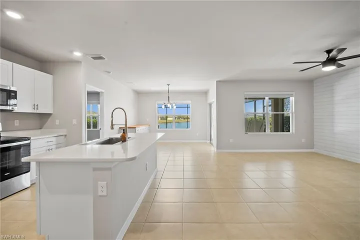 BREATHTAKING LAKE VIEWS with a tranquil water feature set the scene for this lovely 3-bedroom, 2-bathroom home in Waterford Estates. Enjoy the scenery from your expansive screened lanai, complete with a HEATED POOL AND SPA, creating the perfect space for relaxation or entertaining. Inside, this nearly 1,700-square-foot home offers a well-designed layout with tile flooring throughout with plush carpeting and custom built-in closets in the bedrooms. The spacious kitchen features quartz countertops, stainless steel appliances, a center island, and a walk-in pantry. Additional conveniences include an in-residence laundry room with storage cabinetry and access to top-tier community amenities, such as tennis courts, bocce, a BBQ and picnic area, billiards, an exercise room, a social room, and a community pool. Located just minutes from Downtown Punta Gorda, Punta Gorda Airport, and I-75, this home offers easy access to shopping, dining, and entertainment.