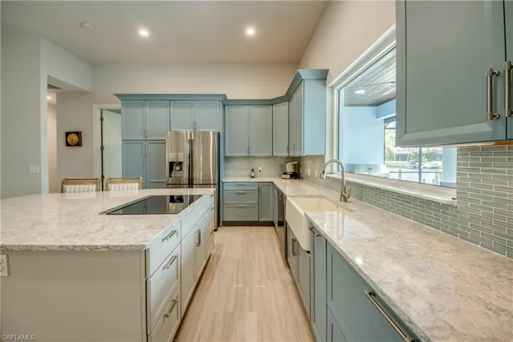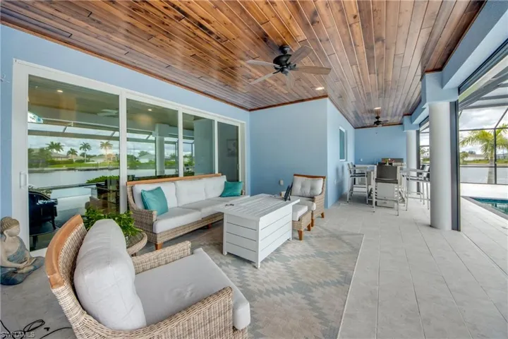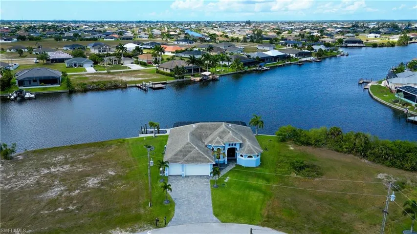 Why hassle with building when you can step right into the enchantment of this magnificent home! You can make building delays and cost overruns vanish like the morning mist and walk right in to THIS perfectly crafted custom home. AND the STUNNING VIEWS will leave you absolutely breathless! This oversize lot enjoys a basin view of intersecting gulf access canals plus the added allure of a long view down the 250-foot wide Gator Slough Canal that stretches in to the horizon. Here the water becomes your playground to fish, boat, kayak and explore countless miles of serene canals and mangroves. Over 143 feet of seawall adorned by a pavered captain’s walk and an expansive composite wraparound dock, your boat finds a perfect home as well. Step inside this custom designed home, where luxury and comfort unite in perfect harmony. The split bedroom floorplan unveils a master suite that spans the full depth of the home, boasting two closets with custom organizers, dual soft-close vanities adorned with exquisite Quartz counters, spacious walk-through shower and room to add a clawfoot tub if your heart desires. The guest suites are equally inviting, each with their own ensuite bathroom featuring soft-close vanities and lovely Quartz counters. A large 12×12 office/den will make a great home office. The great room, with its coffered volume ceilings and four grand sliders, frames the pool and sweeping water views. At the heart of this home lies the charming kitchen, a haven for the serious chef and a gathering spot for guests. The grand island is perfect for meal prep, baking and entertaining, surrounded by beautiful soft-close cabinets adorned with the most gorgeous Quartz you’ve ever seen. This culinary paradise includes a farmhouse sink, a Wolf brand cooktop with pop-up down-draft ventilation, wall oven with steam features and an array of cabinet upgrades. The oversized laundry room provide ample space for an extra freezer or additional pantry, ensuring your kitchen is as functional as it is beautiful. The entire home is graced with stunning tile for an elegant, cohesive look. Jump in the heated, saltwater swimming pool with southern exposure and uninterrupted captivating canal views through the picture screen pool cage. Entertain on the spacious covered lanai with a wood finished ceiling and plenty of shaded area for dining. Thefull-length lanai offers plenty of space for sunbathing and family games. The outdoor kitchen and seated dining area from Paradise Grills completes the lifestyle. LOADED with extras: IMPACT glass doors and windows, electric roll-down hurricane shutters for added safety, tile roof, HVAC with whole-house allergy filtration, whole-house osmosis system, 500-gallon propane tank, ICF construction, whole house generator, 8-foot doors and oversized 3 car garage with epoxy finish. Truly a must-see opportunity. Every detail has been lovingly crafted to create a home that is as functional as it is beautiful. And the lot next door is available too!