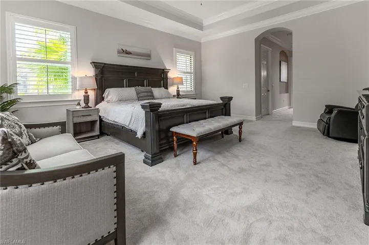 HUGE PRICE IMPROVEMENT!! This beautifully furnished 3-bedroom home with a spacious office/flex room is a true retreat, nestled in a peaceful gated neighborhood surrounded by natural woods for privacy and tranquility. Thoughtfully designed for both everyday comfort and elegant entertaining, the home features soaring 12-foot coffered ceilings and high-end finishes throughout, including rich granite countertops, quality cabinetry, crown molding and plantation shutters. The chef’s kitchen is a showstopper with a massive island, gas cooktop, and large walk-in pantry, flowing seamlessly into the living area and out through a wall of large sliding glass doors that fully retract for true indoor-outdoor living. Step onto the screened lanai where a serene view of a wide lawn and wooded backdrop creates a hidden oasis, complete with a heated pool, spa, and fully equipped outdoor kitchen. The luxurious primary suite offers double-door entry, two walk-in closets, a spa-like bath with a soaking tub and oversized walk-in shower, and private lanai access. This homes offers tons of storage, walk-in closets in every bedroom, large laundry room and high tech accessories like Sonos speaker system and smart home security system. TWO NEW AC UNITS HAVE JUST BEEN INSTALLED IN AUGUST (Huge expense that the new owners will not have to worry about)!!A side-entry 3-car garage enhances the home’s curb appeal, and the community’s location offers convenient access to Immokalee Rd, Collier Blvd, and Vanderbilt Beach Rd, while being zoned for top-rated schools and just minutes from Naples’ best shopping, dining, and beaches. This home truly delivers the Florida lifestyle—peaceful, private, and effortlessly refined.