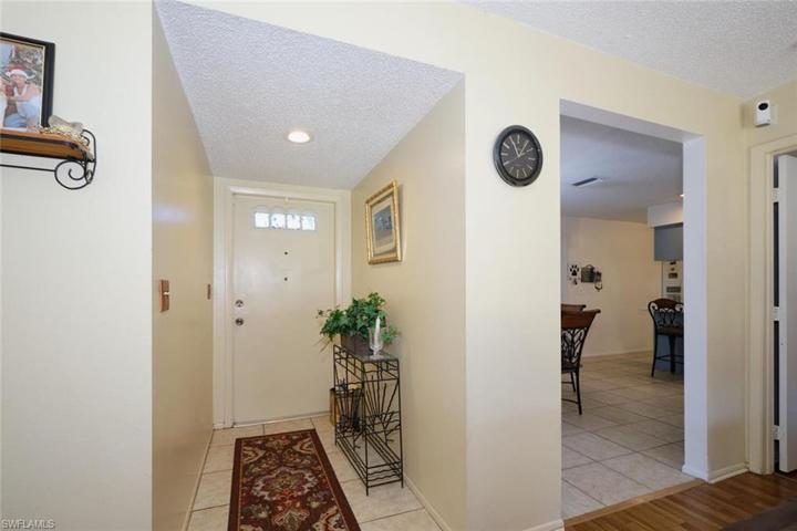 Nestled in a peaceful, mature neighborhood, this meticulously maintained home offers a unique blend of comfort + SWFL living. The front of home boasts a freshly painted facade, a new roof + inviting front yard. This 3 bed/2 bath home has so many extras; a new roof, new hot water heater and shed. The spacious master bedroom has an ensuite bathroom and walk-in closet. 2 bedrooms are equally inviting and share a full bath with tub. The kitchen has been remodeled in popular light gray tones. Light fixtures + ceiling fans perfectly accent each room. Speaking of extras:hurricane shutters, security system, a storage shed, outdoor firepit, separate electric panel outside for an above ground pool, outdoor lighted patio and double UV air purifying system with IQ Honeywell thermostat. The property features a spacious, insulated one car garage for parking, hobby space + additional storage. The fenced in back/side yards offer a tranquil space for outdoor dining, relaxation or entertaining. Walk to shopping and parks– this location offers accessibility. This rare gem is a must-see for anyone seeking a well-kept + inviting place to call home. *SHOWINGS ONLY: TUES-SAT 5-7 pm and Sun/Mon anytime.