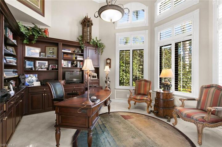 Nestled within the secluded cul-de-sac of Hidden Harbor in the esteemed Bonita Bay community, this exceptional residence is a testament to elegance and modern luxury. The grand entryway boasts soaring 21ft coffered ceilings, seamlessly merging the beauty of the outdoors with the refined interior. Inside, meticulous details shine, from marble flooring to the lavish great room and open kitchen with upgraded Sub Zero and KitchenAid appliances. The primary suite features 17ft ceilings and pocket sliding doors leading you to outdoor living space. Additional bedrooms offer ensuite baths and walk-in closets. The inspiring den, with its lofty 17ft ceiling and natural light, becomes a captivating workspace. Transition seamlessly to outdoor living as the lanai unveils a covered area alongside pool and spa, a perfect sanctuary for both serene moments and grand entertaining. This home boasts extensive upgrades, including a new roof, top-tier HVAC systems, upgraded electrical, whole-house Halo water filtration system & more. Bonita Bay residents relish access to a private golf club, fitness center, spa, beach club, marina, and fine dining—a lifestyle of luxury, leisure, and exclusivity awaits.