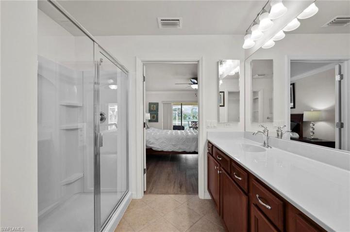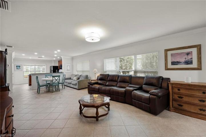 Welcome to this freshly painted TURNKEY three bedroom two full bathroom single family home in the highly desirable gated community of Verona Walk. This Pine Spring model is meticulously maintained and move in ready with tile floors throughout the main living area, luxury plank vinyl in the bedrooms, walk in closets and slider doors in the master with access to your patio and lake view, custom crown molding, a spacious living area great for entertaining, an oversized extended patio with a covered lanai and lovely lake view. This property is a must see! Verona Walk in an amenity rich GAURD GATED community offering premier resort style amenities including a beautiful clubhouse, large gym, ample tennis courts, pickle ball and much more ! The perfect location situated between Marco Island and Downtown Naples with just a short trip to beaches, shopping and fantastic restaurants !