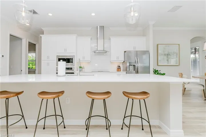 Seamless indoor-outdoor living awaits in your private pool and spa retreat, enhanced by a No-See-Um panoramic screen enclosure (March 2025) for uninterrupted views and year-round comfort. The beautifully designed outdoor kitchen creates the perfect setting for entertaining. The exterior has been meticulously refreshed with new exterior paint (December 2025), roof soft wash (December 2025), and updated exterior lighting (December 2025). Lush, upgraded landscaping further elevates the home’s curb appeal and grand sense of arrival.
