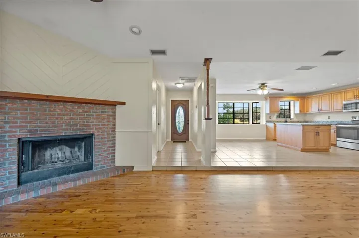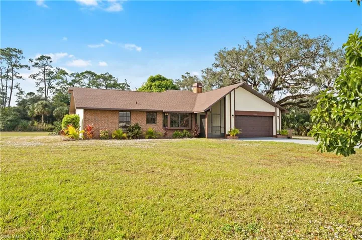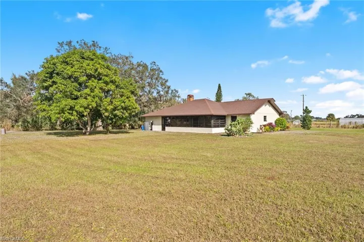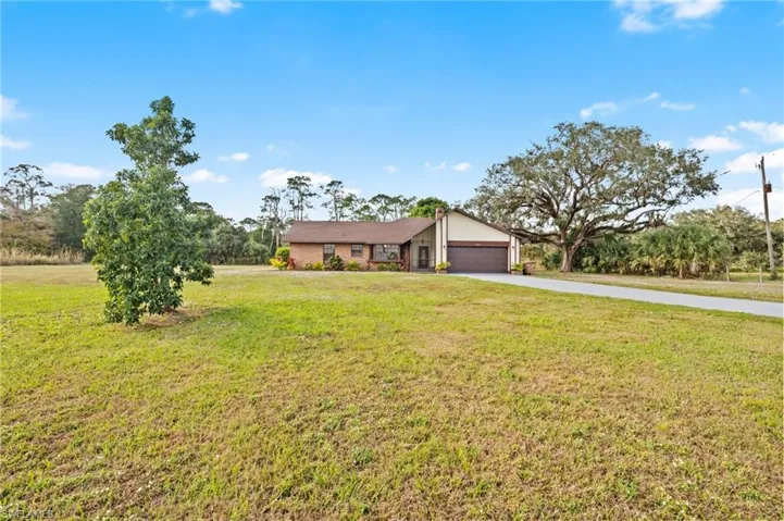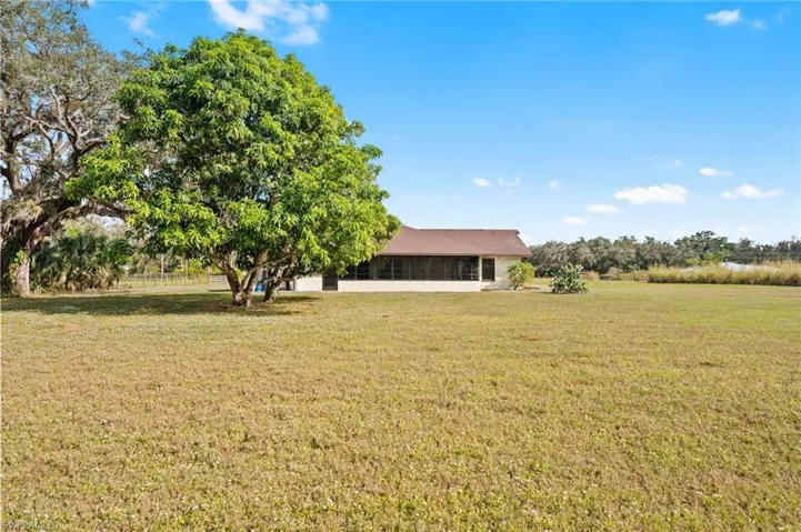 Fantastic Alva acreage home with high elevation (in the X zone)! Updated with new water system, NEW ROOF (2023), new vanity in guest bathroom and new paint throughout both interior and exterior. Refinished Australian Cypress wood floors in the living room, new carpet in the three bedrooms and new outdoor carpet on the enclosed lanai. Solid concrete CBS construction with CPVC plumbing and recently updated water filtration system. At 1.78 acres, this perfectly sized parcel sits directly next to a large gated gulf-access riverfront parcel on a quiet street with no through-traffic and no HOA rules or fees. Plus, because the elevation is so high above sea level, it is completely out of the special flood hazard areas–this means no flood insurance is required–which will save you $500 a month over other homes! Peaceful westerly-facing enclosed lanai and backyard has sunset views and mature oak trees. The two car garage features a utility sink and a long concrete driveway. The kitchen is spacious with granite countertops and stainless steel appliances, a pantry, and plenty of room for a farmhouse kitchen table. Think of all the possibilities… You can have all your animals, pets, RVs, boats, 4-wheelers and other toys here and keep them clean and dry with no low-lying areas. What are you waiting for? Schedule your private tour today!