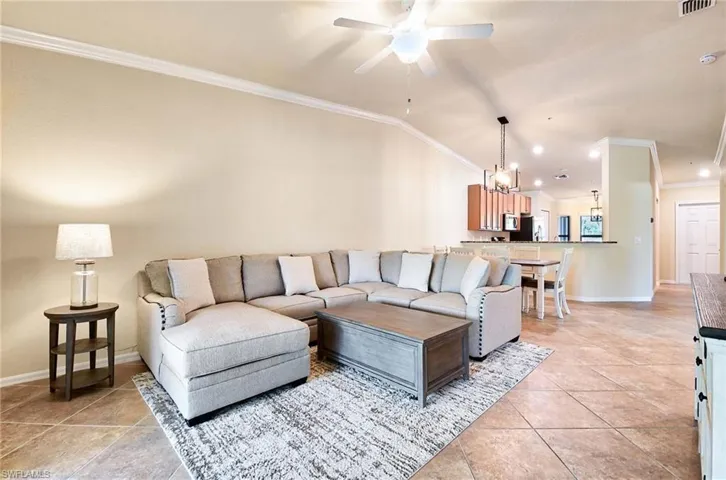 GOLF MEMBERSHIP included with this END UNIT, 2nd-floor Veranda with private garage. Offered TURNKEY. Stunning lake and golf course views welcome you on the lanai and primary bedroom suite. This home includes upgraded finishes, such as extended tile laid on the diagonal, vaulted ceilings, granite countertops, California Closets in the primary suite, and a Kinetico water system for the sink and fridge. NEW upgraded to size 50 gallon hot water heater. Bonita National Golf and Country Club is a destination unto itself a lagoon style pool featuring a waterfall, lap-lanes, a poolside bar and grill and cabanas for that resort feel or enjoy a day of golf and tennis! There is so much to do for an active lifestyle and great wind down opportunities with a full service spa, two additional dining options at the glorious clubhouse, game rooms, superb locker rooms and much more! When you are ready to venture out, the airport is close and beaches are a straight drive west on Bonita Beach Road. Restaurants are plentiful either going south down Logan or west to Bonita. Just minutes away from the under construction “Midtown Bonita”. Your days will be filled from sunrise to sunset, or as relaxing as you choose! Buyers, ask your agent for the video tour and matterport links attached to the listing.