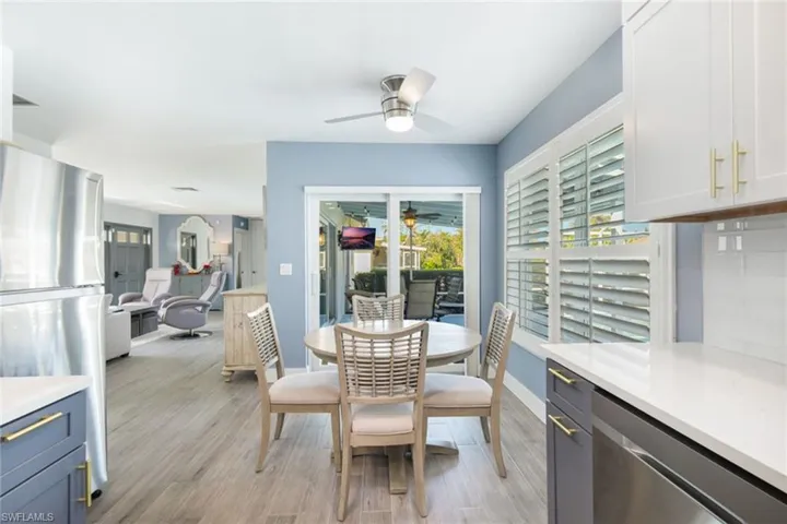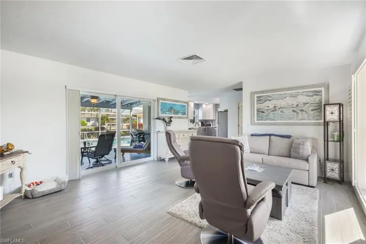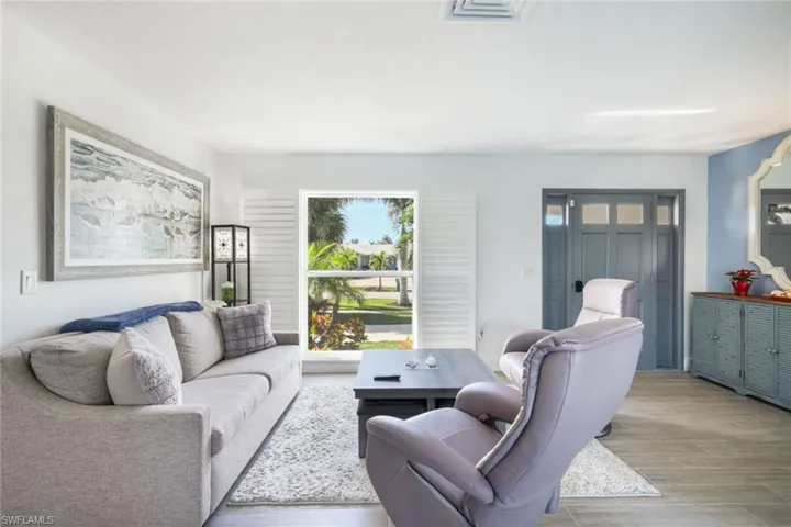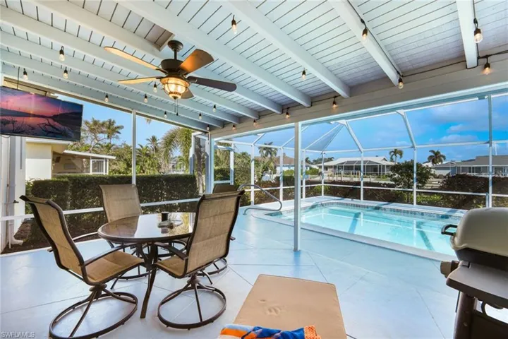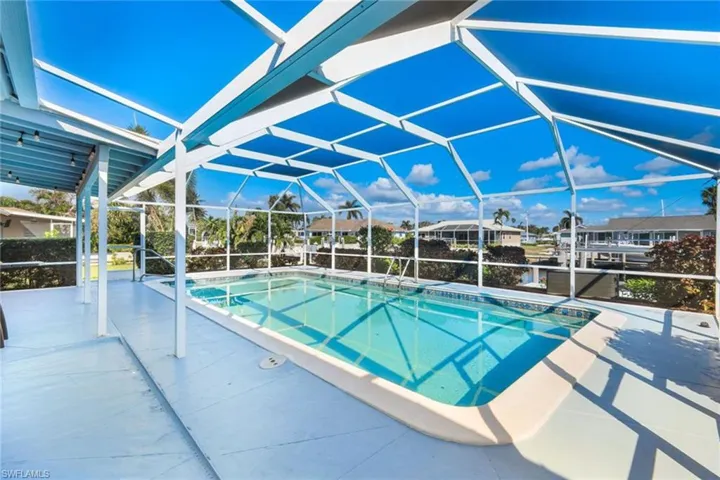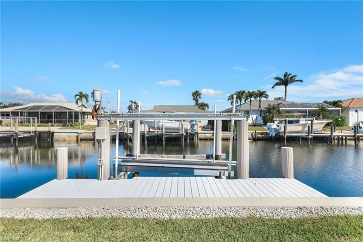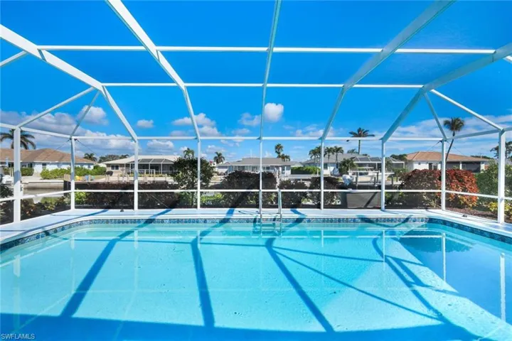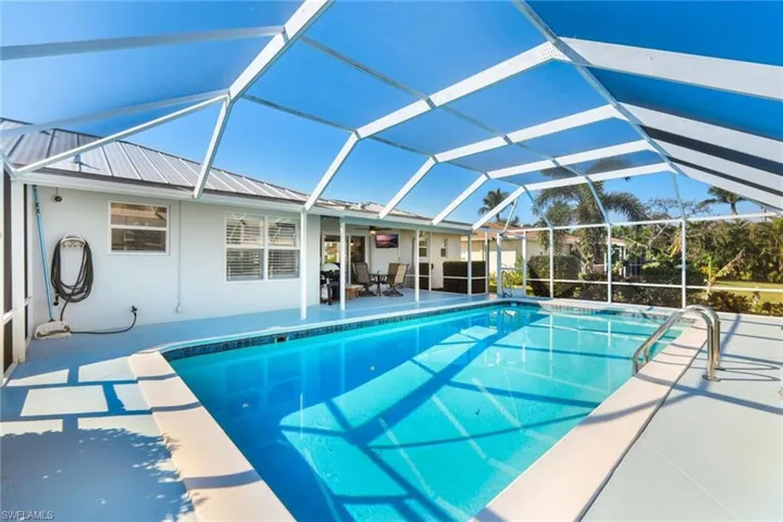 A great opportunity to own a waterfront home on Marco Island. This charming fully furnished residence has been beautifully updated with a classic coastal ambience and is move-in ready. Wood-like tile floors throughout for easy maintenance. Split bedroom floor plan and eat-in kitchen, custom cabinets and stainless appliances. Impact glass windows and doors. New metal roof in 2021. New seawall in 2021. The screened patio gives way to the pool and gorgeous water views. The seawall and dock will elevate your boating experience where the dock includes a 5,000-pound boat lift. Nicely landscaped. Also available is 787 Apple Court. Buy separately or combine for your private waterfront oasis or investment property.