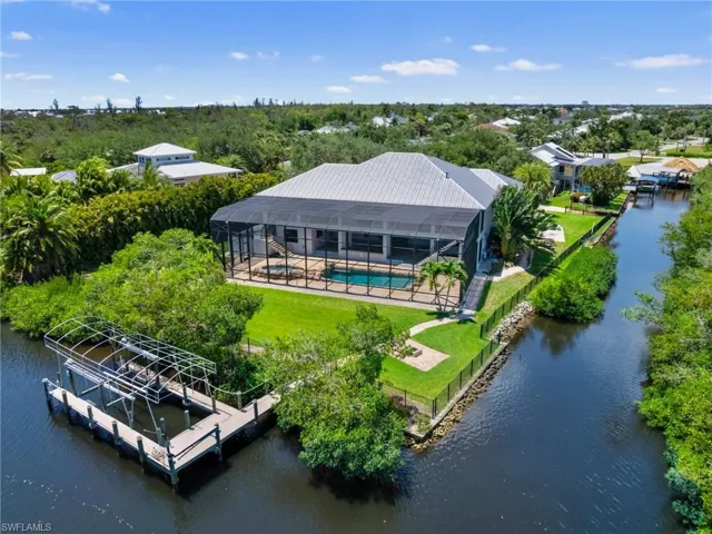 Extremely rare, this 1.1 acre waterfront smart home in Fort Myers is conveniently located off US-41 on a quiet cul-de-sac for quick access to the airport by car and 15-minutes to the gulf by boat! Very secluded mangrove creek setting surrounded by greenery on three sides of the home with no visible neighboring homes. Parkridge Estates looks and feels like a gated community without the hassles of an HOA! Admire the photos, watch the video, and come see this incredible multi-story 4,745 sq ft custom 5-bedroom pool home built CBS all levels. The oversized estate lot has mature shade trees, 190ft frontage on Mullock Creek, 230ft frontage on saltwater canal, and a private boat ramp. State of the art electronics include Ecobee smart home controlled remotely from your phone, 16-camera enhanced security system, interior and exterior audio speakers, and lighted palm trees lining the expansive driveway. Luxury features include 4-car garage with epoxy floor, new metal roof, trending color fresh exterior paint, gas cooktop, large fully-appointed walk-in pantry, tankless gas water heaters, spray foam insulation, impact rated windows, impact rated doors, Disney World resort-style salt pool with integrated waterfall, MASSIVE pool cage, built-in bookshelves, two laundry rooms, elevator shaft, 23 fans, multiple shower heads with body jets, and a 940 sq ft bonus area! Outdoor living is redefined here with a gigantic lanai, outdoor bar, endless pool decking, firepit, and spacious balconies connecting four bedrooms to the pool-caged fun space. Completing this epitome of waterfront living is the wrap-around dock with gentle manatees, surfacing dolphins, plumbed water, electric service, and a canopied 14k lbs boat lift. Call now!