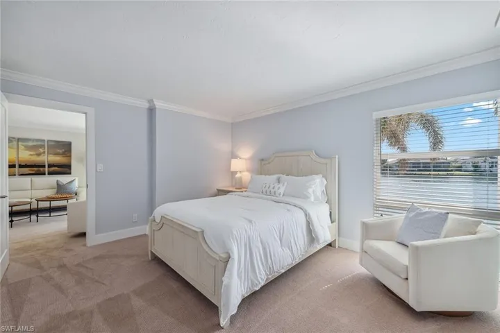 Discover the epitome of refined coastal living in this newly updated condominium with breathtaking southwestern views of Venetian Bay. Indulge in the spectacular sunrises and serene sunsets with your morning coffee or evening cocktail on your private lanai. The fully upgraded kitchen showcases white shaker soft-close cabinets, Whirlpool stainless steel appliances, pendant lighting and a quartz high bar with ample seating for entertaining. The unit features tile flooring and carpet and is also accompanied with a dedicated covered parking space, secured entry and on-site manager. Residents can enjoy the social room and community pool with outdoor kitchen and bar with lovely bay panoramas ideal for soaking up the sun. For boating enthusiasts and beach lovers, there are on-site boat slips available to lease and residents have the option to join the private Park Shore beach park. Owners can take a leisurely stroll to fine dining, boutique shopping and entertainment at the renowned Venetian Village and are a short drive to the Mercato, Waterside Shoppes and historic downtown.