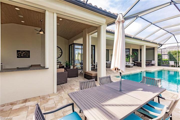 Rare opportunity to own a magnificent custom home built by Royal Corinthian. This home offers 3112 sq. ft. of living space with 4 bedrooms, Den, 3.5 bathrooms, 3 car garage with AC and tile flooring and expanded Lanai. Features abound throughout including: crown molding, exquisite ceiling details in multiple rooms, built in cabinets, California closets in master suite, zero corner and pocket sliders at kitchen nook and great room, central vacuum, upgraded appliances, large breakfast bar and middle island, air conditioned 3 car garage with extra storage, extra sink and tile floor, central vac, outdoor kitchen and fireplace, custom pool and spa with water features and much more. A large foyer opens up to an expansive Family room and great view and a formal dining room with half wall to the side. Kitchen is a chef’s dream with extra cabinet space, large walk-in pantry and plenty of counter space. The Lanai has multiple seating areas to relax and includes an outdoor kitchen and fireplace, custom wood ceilings and great views of the Golf Course and Lake. Verandah offers a full array of amenities and activities to meet everyone’s needs. Come secure your place in Paradise NOW.