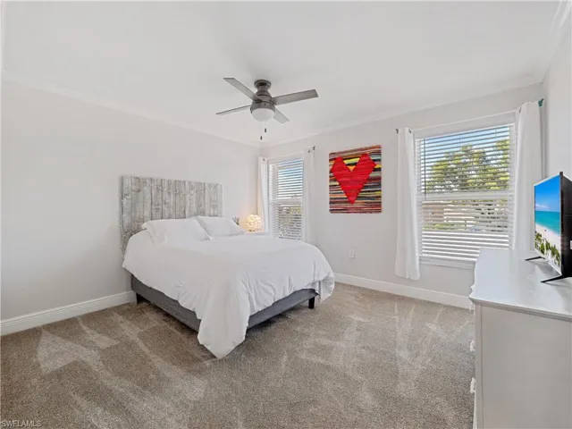 This second-floor end unit has exceptional privacy with no neighbors on one side and an abundance of natural light throughout. Step inside to a bright, open layout anchored by a stunning 14’ x 9’ expanded chef’s kitchen featuring custom 42” cabinetry, quartz countertops and backsplash, and premium KitchenAid appliances all overlooking wide canal views.