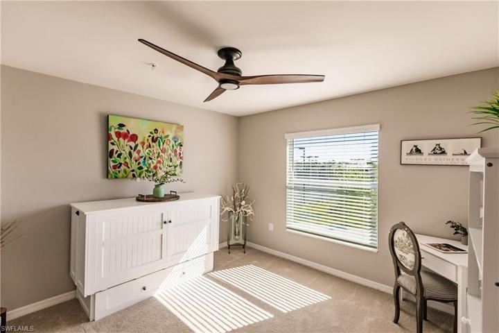 GOLFER’S year round paradise with full golf membership! This end unit condo is the largest Lennar design, an Arabella II, in the Veranda section of Babcock National featuring a split floorpan with bedrooms at opposite ends of the home for maximum privacy. Near the foyer is a kitchen that leads to a versatile living room and dining space in a shared open design, with access to the lanai for outdoor activities. A private den with a Murphy bed sits between the two bedrooms. This seller has upgraded at every opportunity – high end kitchen appliances, glass kitchen back splash, California closets in every room AND the garage, shiplap walls in the great room and a custom driftwood wall in the owner’s suite. Even the light fixtures and ceiling fans throughout are model worthy. Owner thought this would be her forever home and was then work transferred. Come enjoy everything this condo and Babcock National Golf has to offer including Founder’s Square which hosts food trucks every weekend and the brand new Amenities Center with resort style pools, restaurants, a fitness center, pickle ball, bocce, a full service spa, EV charging and shopping! New units being built start at $510,000.