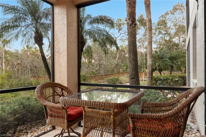 This 1st floor 2 BD/2 BA condo is being sold TURNKEY, so bring your toothbrush and start enjoying your new Florida home. This condo is located in the building located right next to the largest pool/spa and grilling areas and in walking distance to all of the fabulous amenities. The beautifully renovated kitchen with new white cabinets, granite counter tops and backsplash offer a lovely place to entertain family and friends. Plantation shutters give this home a clean finished look. All New appliances and yes that includes a Brand-New A/C!! Enjoy the peaceful tropical vegetation and wildlife from the screened in lanai.