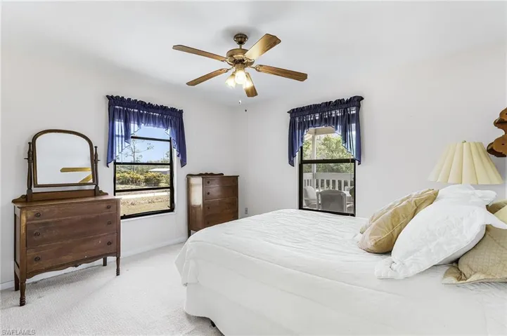 Private and peaceful 3 bed/3 bath two-story home on 1.37 acres in St. James City with a flexible in-law suite. The upper level offers 2 bedrooms, 2 baths, open living, formal dining, den/office, and interior laundry. Sliding glass doors open to a wraparound wood porch on three sides. The kitchen features ample cabinetry, generous counter space, and a breakfast bar. The primary suite includes a walk-in closet, tiled walk-in shower, and porch access.