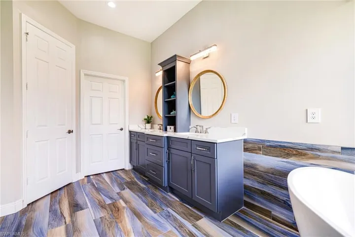 Welcome to your new home in the sought-after gated community of River Club! This expansive 5-bedroom, 3.5-bathroom residence boasts an extremely convenient location…just minutes to I- 75 & Route 41, with plenty of room for the entire family—and then some. From the moment you arrive, the inviting front porch and paver driveway/walkway will welcome you to come and explore. Inside you will discover dramatic living space boasting 12’ ceilings with a pleasing color palette surrounded by abundant windows that bring in natural light. Separate living and family room provides ample space for all! The large formal dining room is ideal for entertaining or gathering your whole family together for a meal. The heart of the home is the impressive open-concept family room-kitchen area with breakfast nook, featuring an attractive custom accent wall with accent moldings and sliding doors to the back patio. The bright and spacious kitchen offers abundant white cabinetry, an island with seating, stainless steel appliances, and pantry… a built-in coffee bar/desk area adds extra functionality. The breakfast nook is surrounded by windows, allowing natural light to pour in as you enjoy your morning coffee overlooking the lush backyard. The fully fenced yard is a private retreat, with mature landscaping offering privacy and a spacious paver patio—perfect for grilling and outdoor entertaining. Retreat to the luxurious first floor primary suite with 10’ volume ceilings, upgraded wood-look tile flooring and private access to the backyard through the French door with glass inset. The fully renovated en-suite bathroom is a spa-like oasis featuring a freestanding soaking tub, handsome soft close cabinets with drawer storage and dual sinks with stone quartz, attractive round framed mirrors, elegant lighting, private water closet, and an oversized walk-in shower with double rainfall heads and handheld sprayers. A large walk-in closet finishes off this updated space. Three additional bedrooms on the main floor offer flexibility for guests, a home office, or a growing family. The versatile 600+/- sq ft loft upstairs, provides the perfect space for a game room, private suite (complete with its own bath and walk-in closet), home office, or fitness area. Additional features include a three-car garage with ample storage and access to River Club’s community amenities, including a resort-style pool and fitness center. Conveniently located near I-75, this home offers easy access to shopping, dining, and everything the area has to offer.